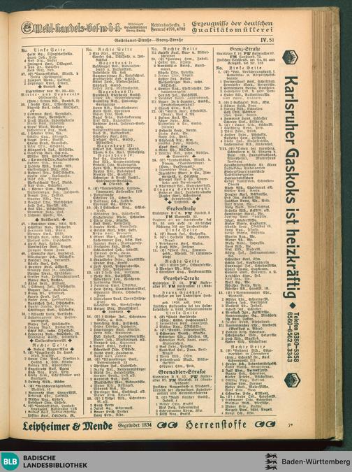 IV. Verzeichnis der Straßen (nach dem Abc) und Häuser (nach den Nummern) IV. Verzeichnis...