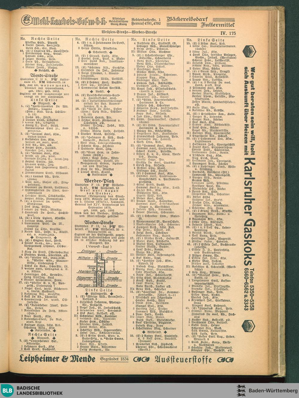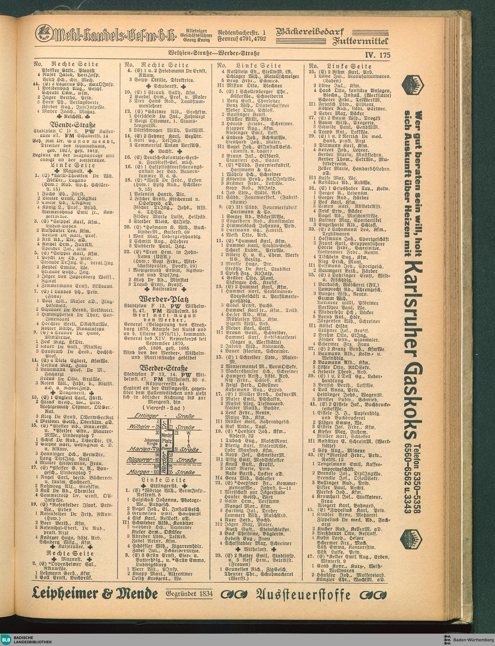 IV. Verzeichnis der Straßen (nach dem Abc) und Häuser (nach den Nummern) IV. Verzeichnis...
