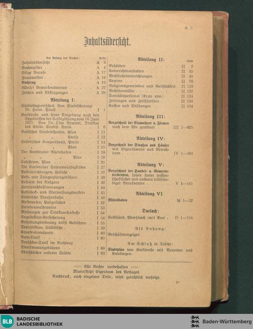 Adressbuch (Stadtbuch, Einwohnerbuch) der Landeshauptstadt Karlsruhe