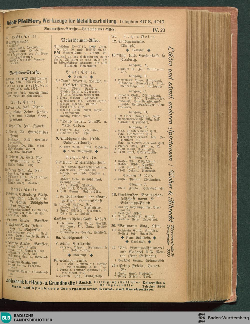 Adressbuch (Stadtbuch, Einwohnerbuch) der Landeshauptstadt Karlsruhe