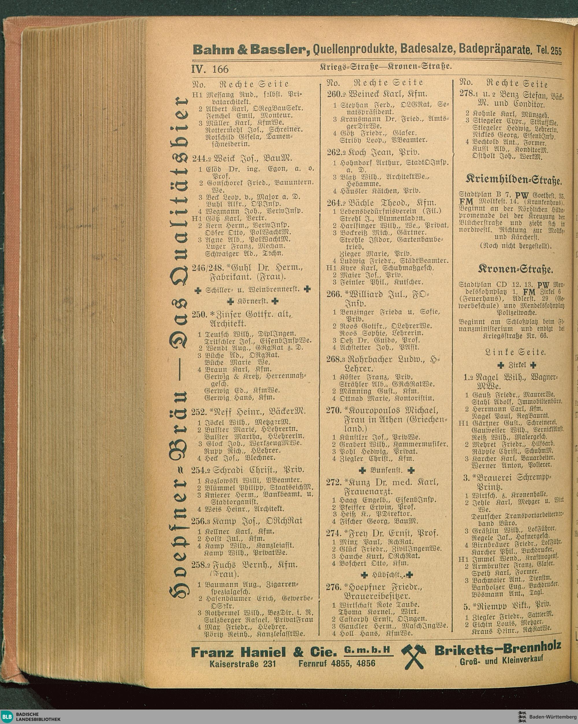 Adressbuch (Stadtbuch, Einwohnerbuch) der Landeshauptstadt Karlsruhe