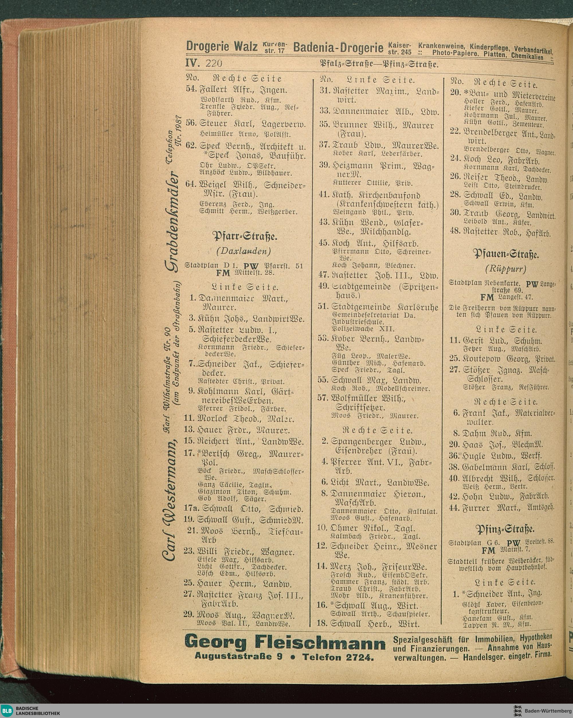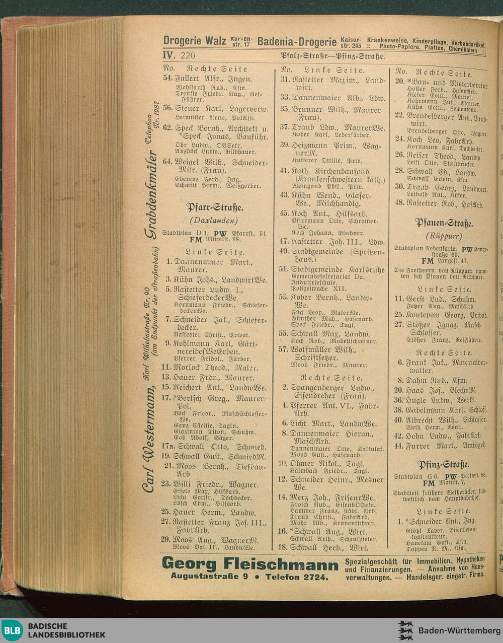 Adressbuch (Stadtbuch, Einwohnerbuch) der Landeshauptstadt Karlsruhe