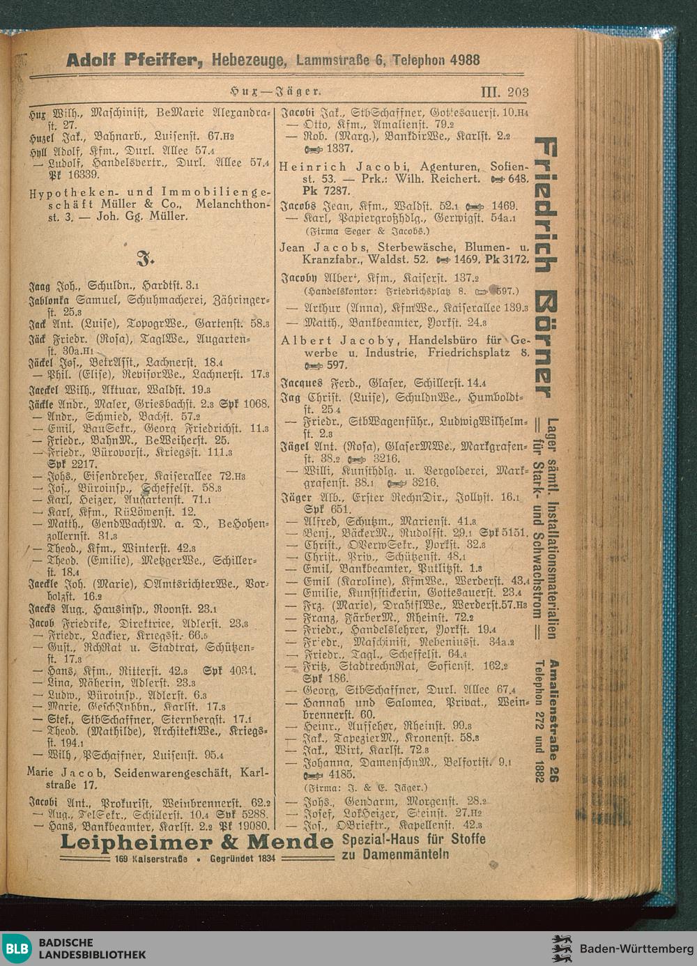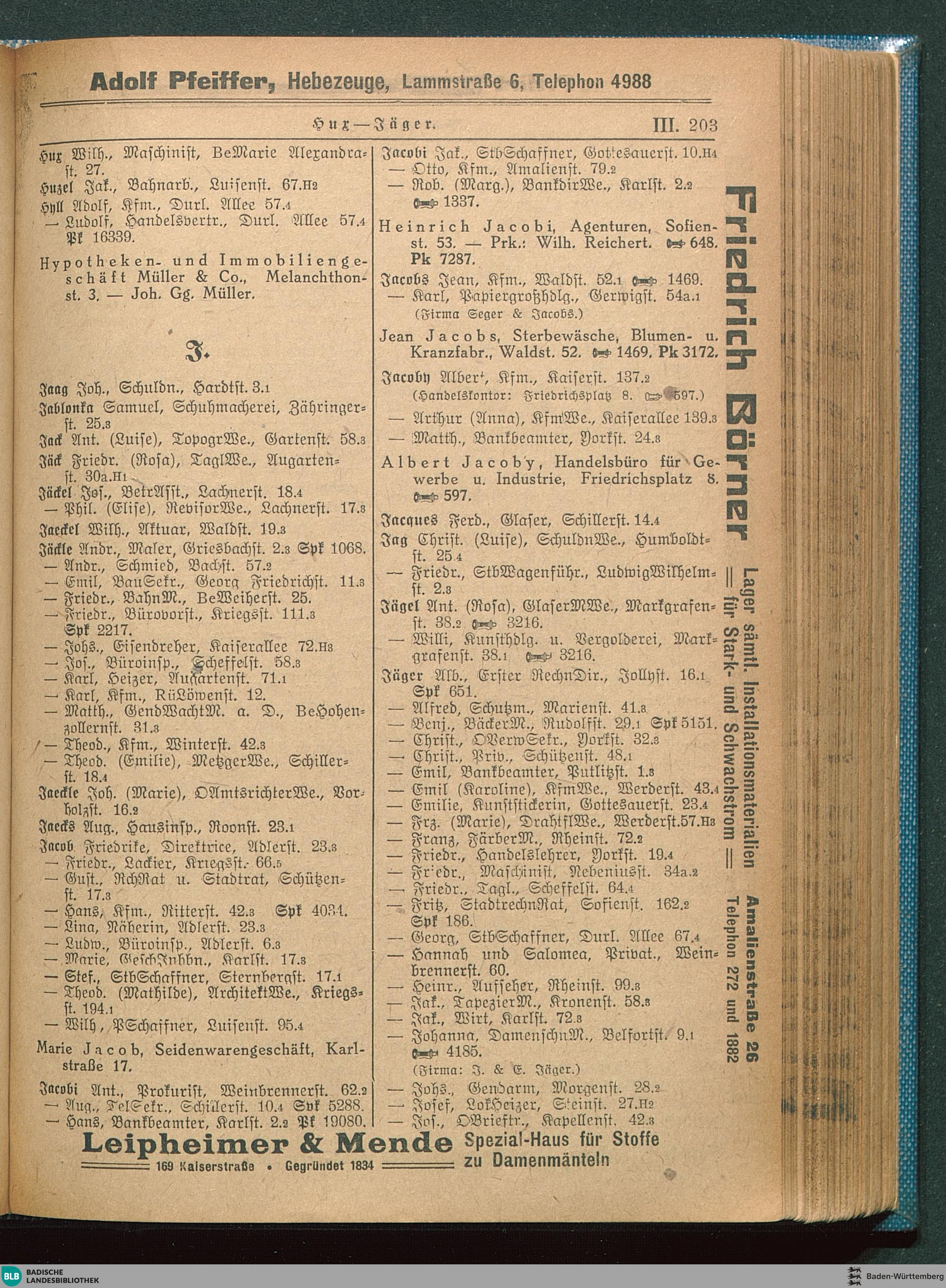 III. Alphabetisches Verzeichnis der Einwohner und Firmen
