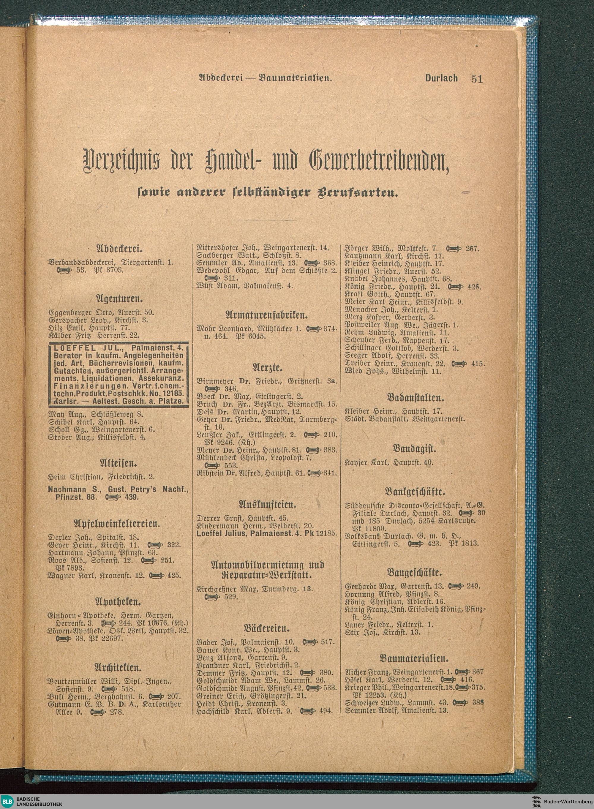 Verzeichnis der Handel- und Gewerbetreibenden sowie anderer selbständiger Berufs...