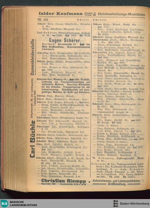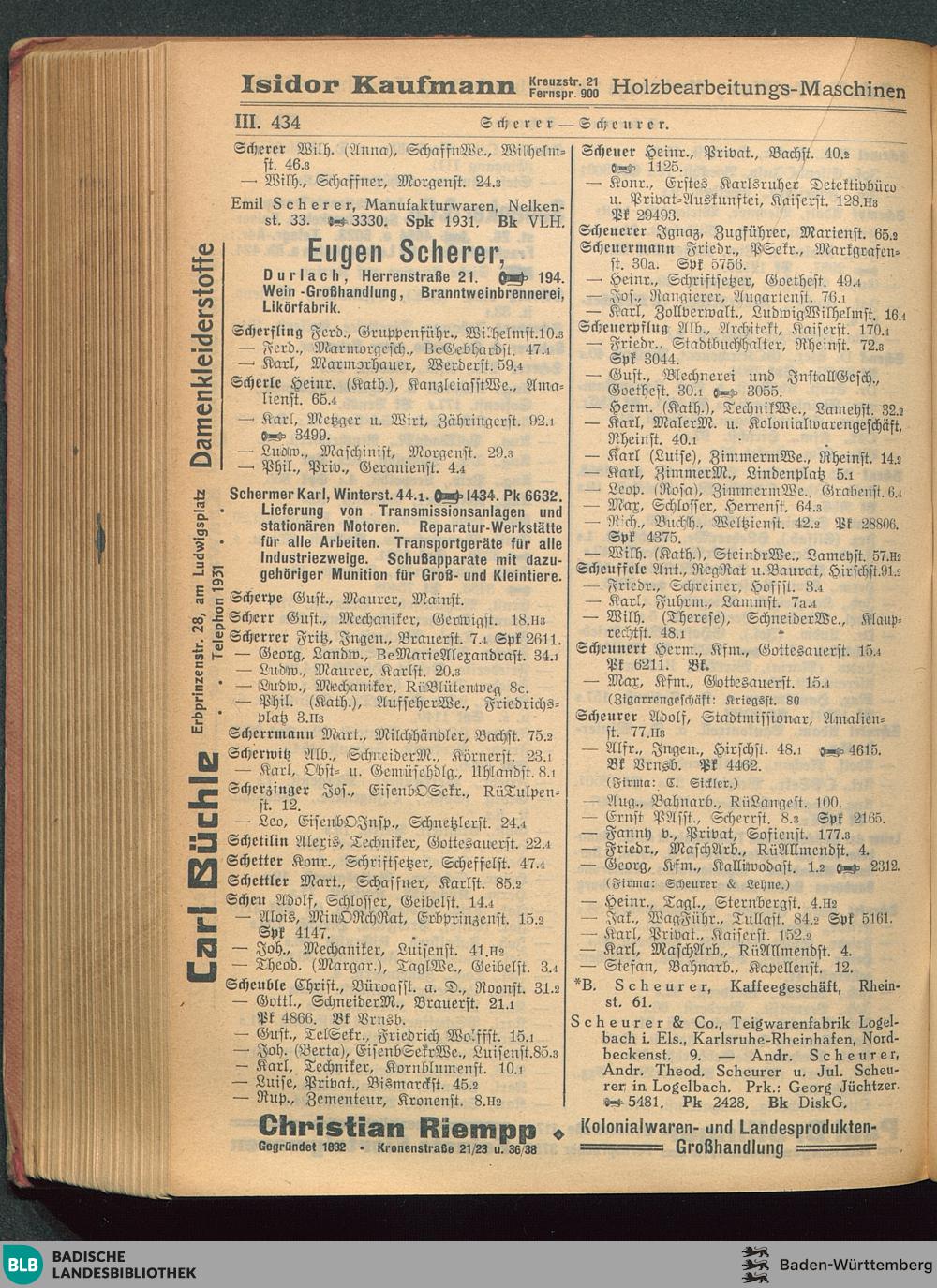Adressbuch (Stadtbuch, Einwohnerbuch) der Landeshauptstadt Karlsruhe