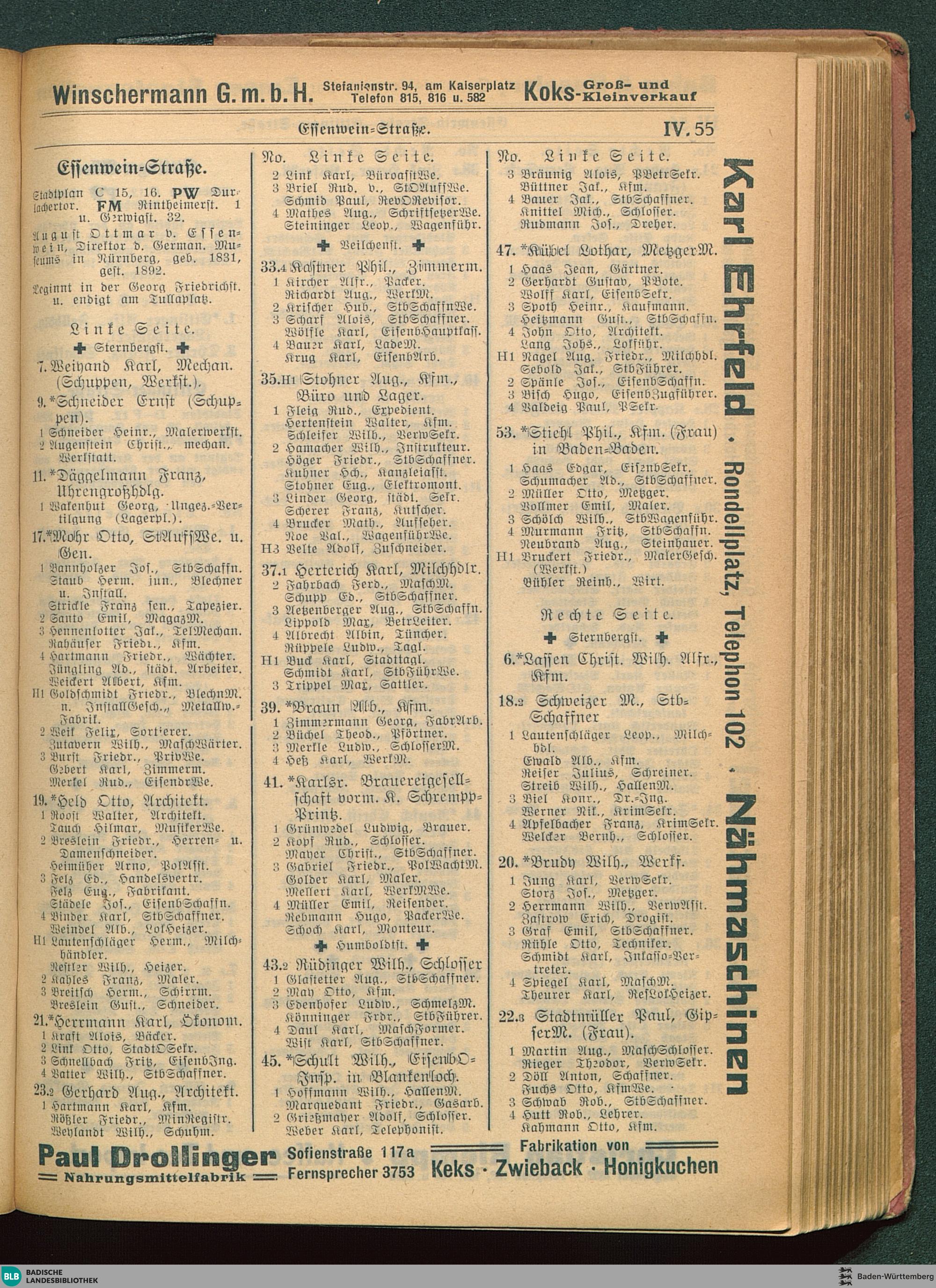 IV. Verzeichnis der Straßen (nach dem Abc) und Häuser (nach den Nummern) mit Angabe...