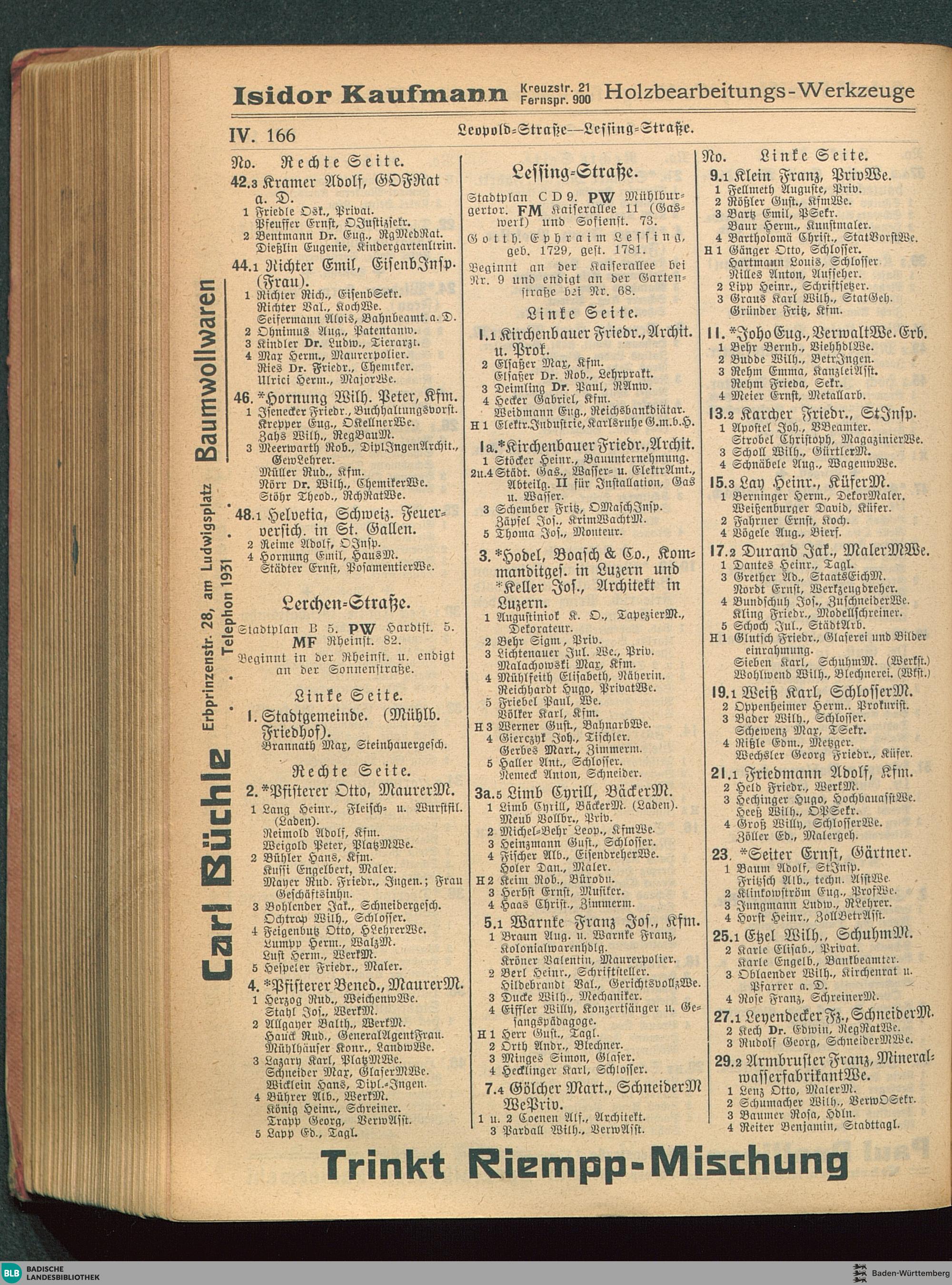 Adressbuch (Stadtbuch, Einwohnerbuch) der Landeshauptstadt Karlsruhe
