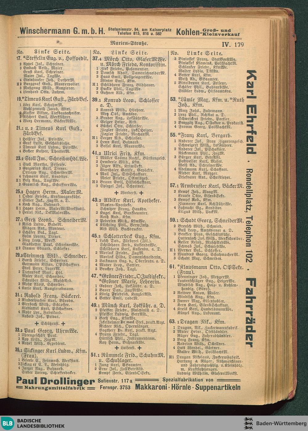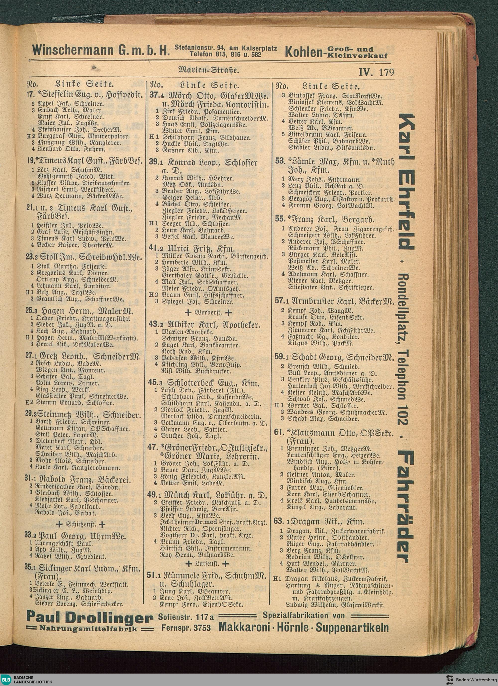 IV. Verzeichnis der Straßen (nach dem Abc) und Häuser (nach den Nummern) mit Angabe...
