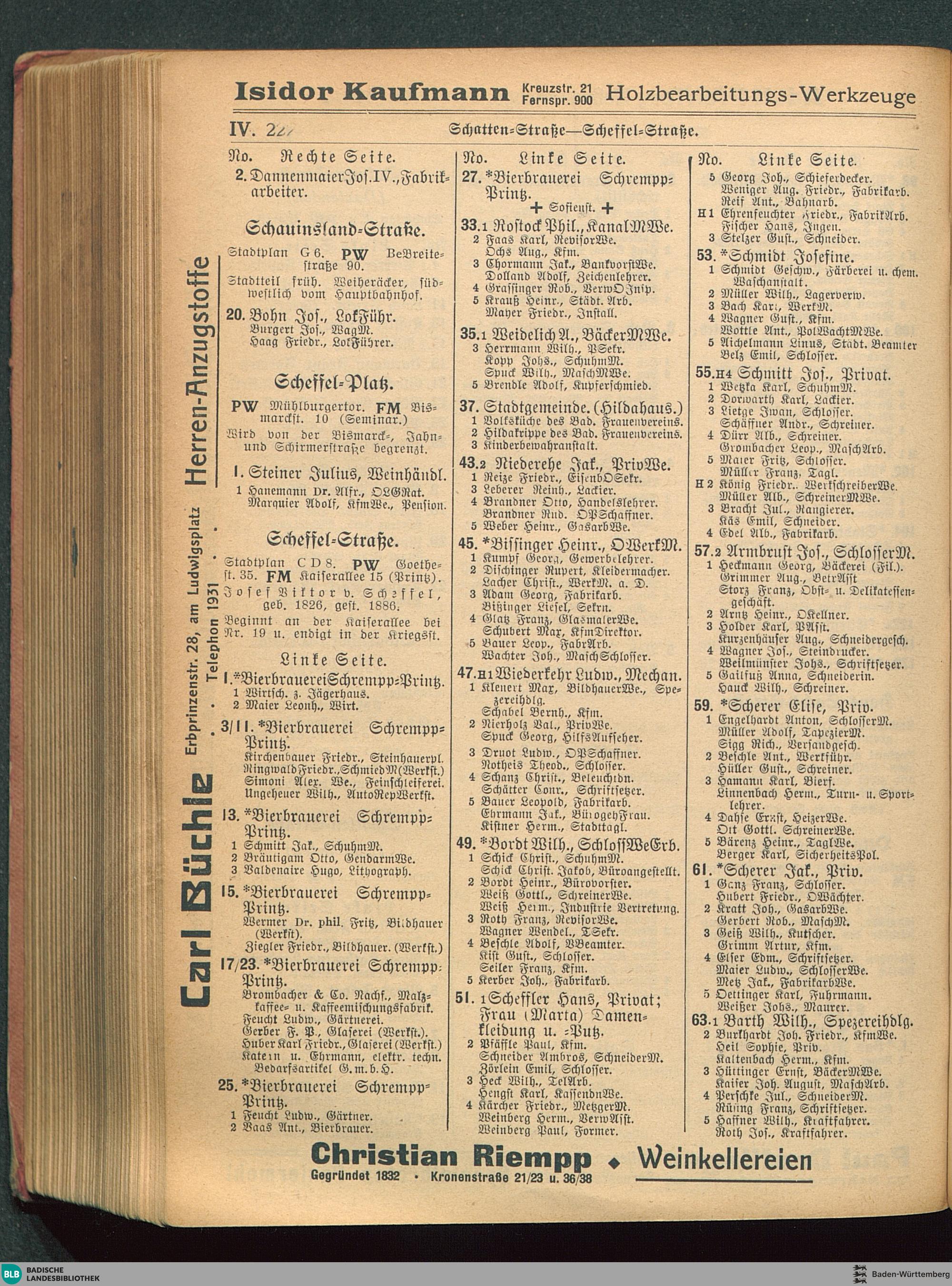 IV. Verzeichnis der Straßen (nach dem Abc) und Häuser (nach den Nummern) mit Angabe...