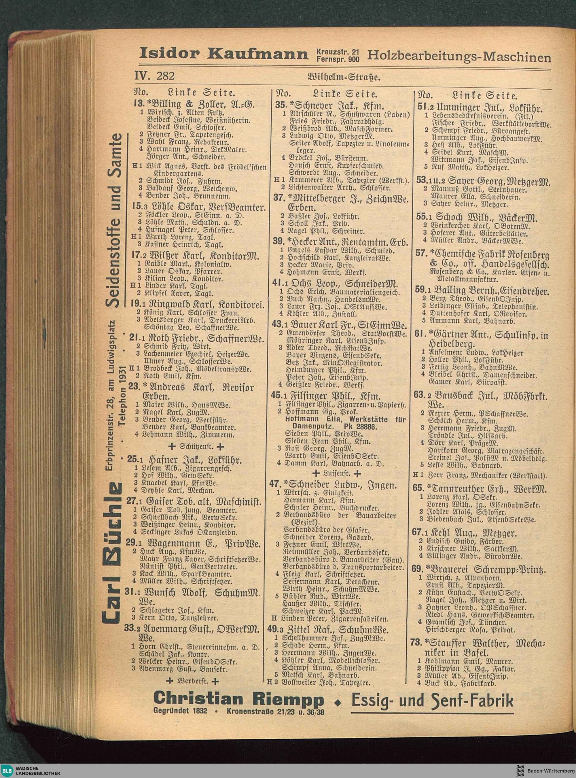 Adressbuch (Stadtbuch, Einwohnerbuch) der Landeshauptstadt Karlsruhe