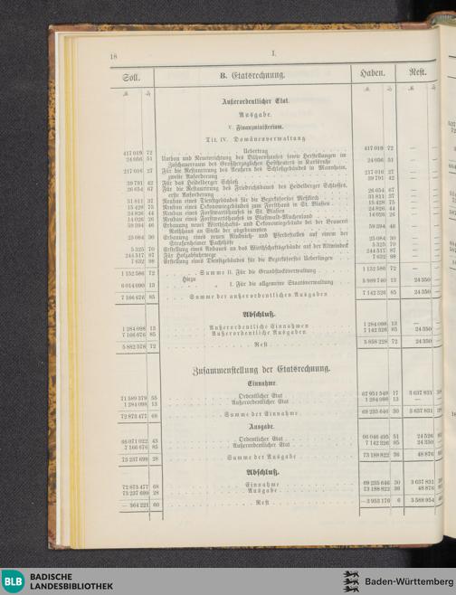 Erste Abtheilung, enthaltend die Hauptstaatsrechnung und Betriebsfondsdarstellungen...
