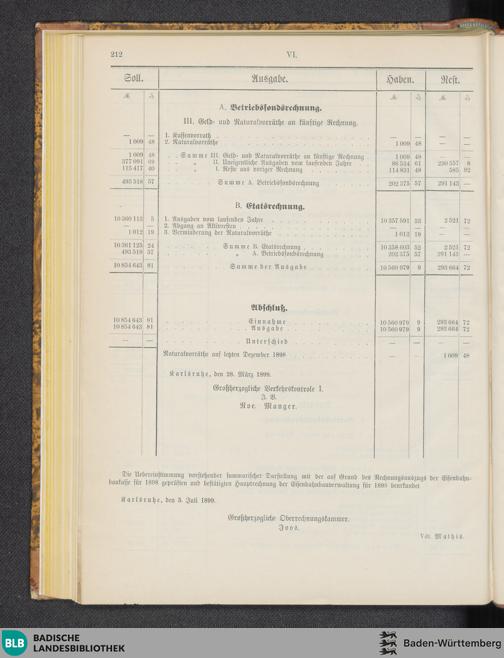 Summarische Darstellung der Hauptrechnung der Eisenbahnbauverwaltung für 1898