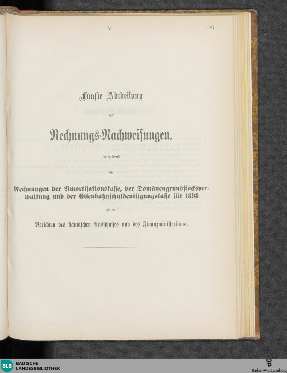 Fünfte Abtheilung, enthaltend die Rechnungen der Amortisationskasse, der Domänengrundstocksverwaltung...