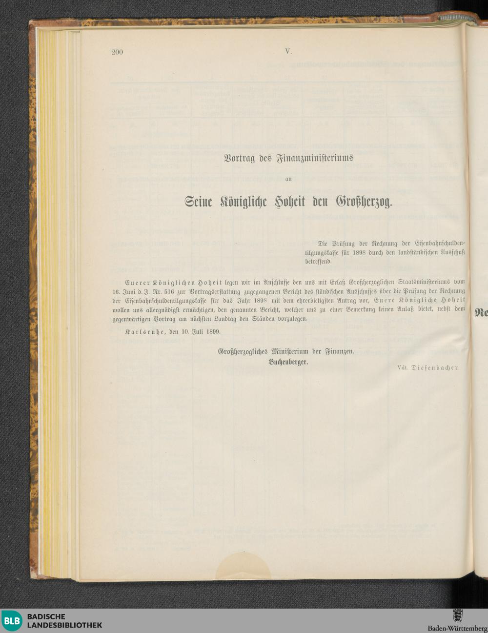Vortrag des Finanzministeriums an Seine Königliche Hoheit den Großherzog