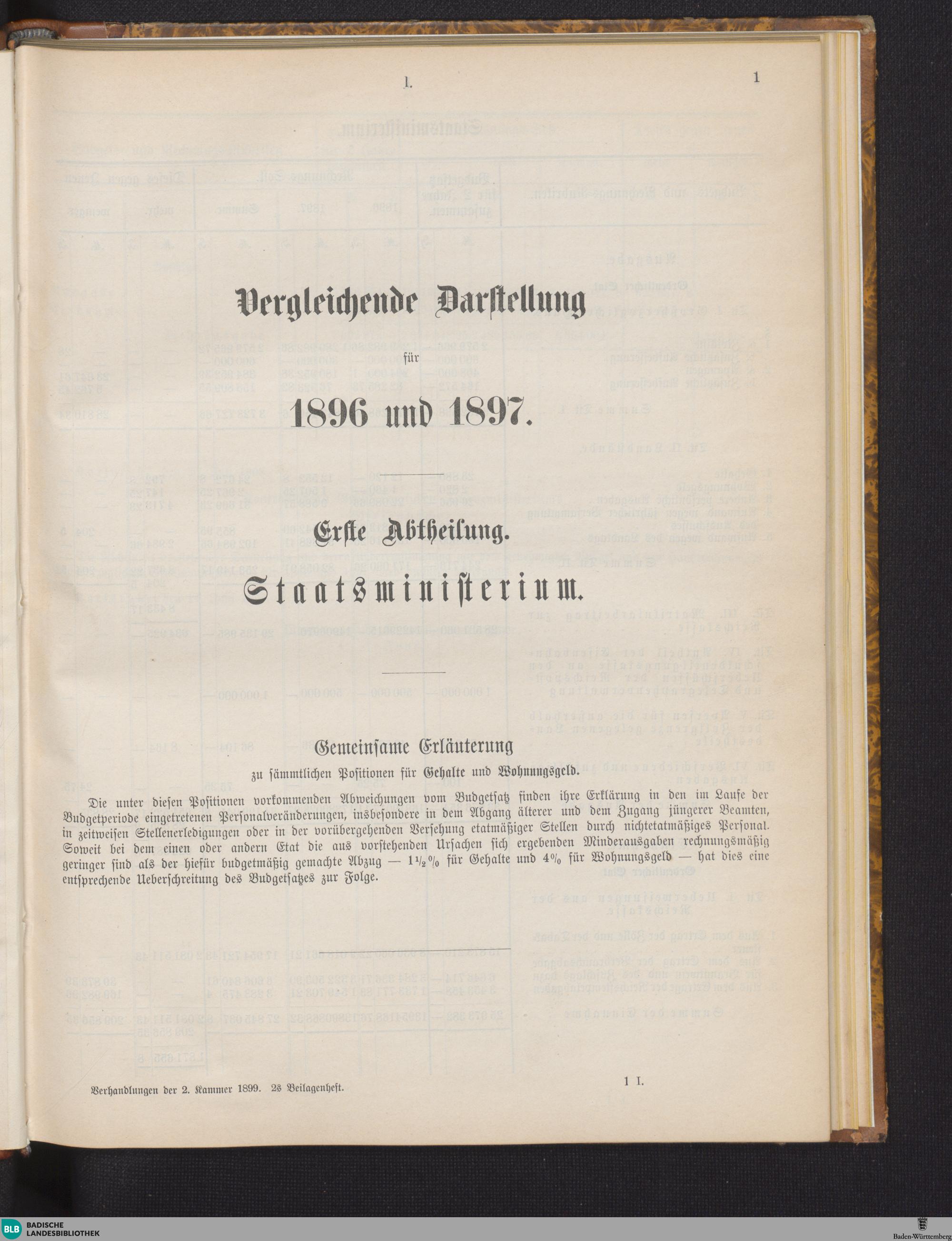 Erste Abtheilung. Staatsministerium