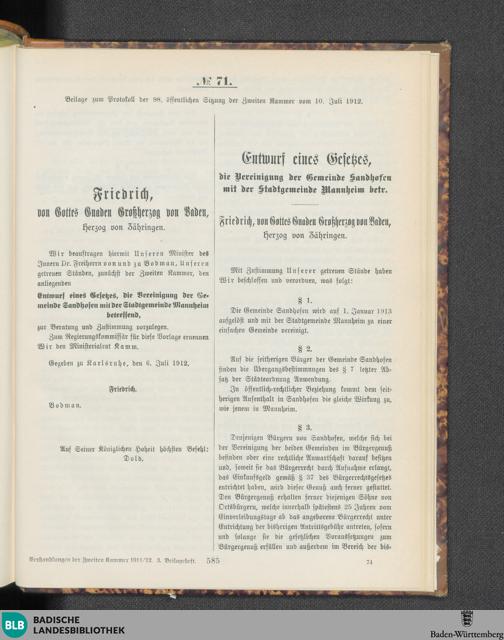 Badischer Landtag, 2. Kammer - digitalisiert