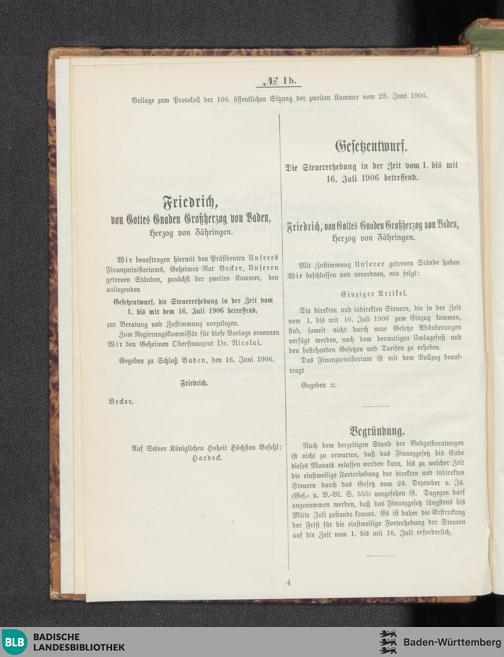 Beilagen zur 106. Sitzung (23.06.1906)