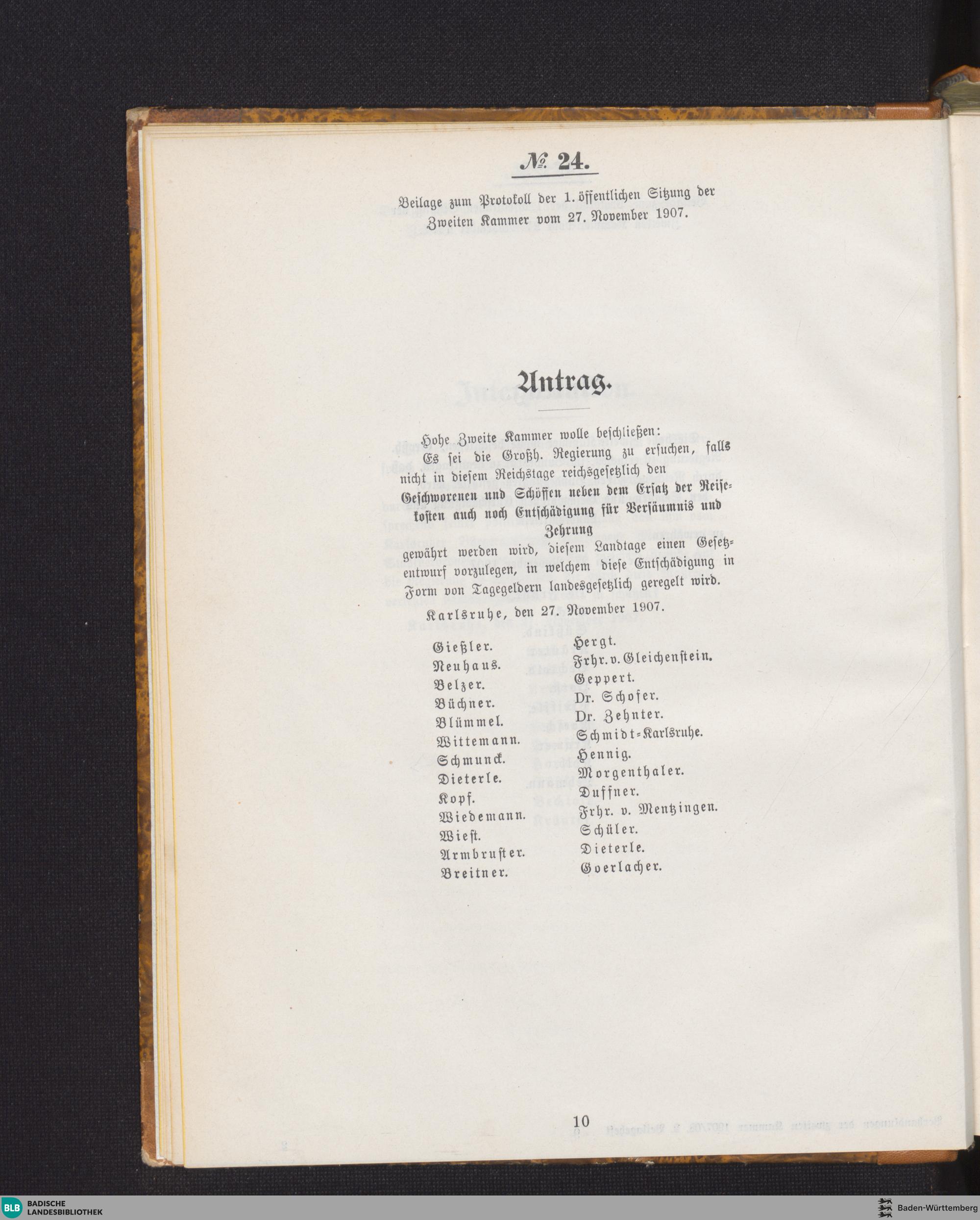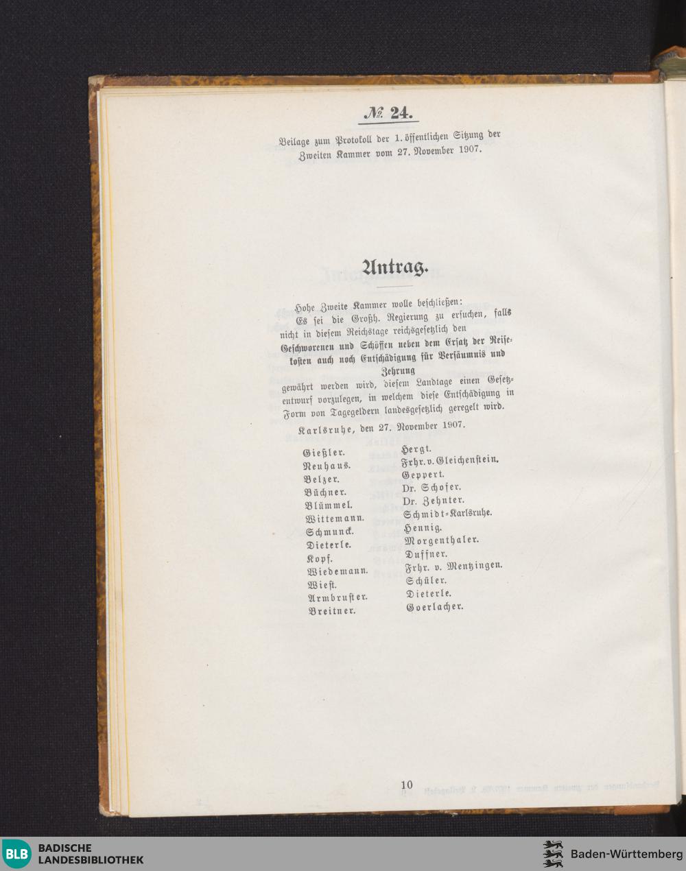 Beilagen zur 1. Sitzung (27.11.1907)