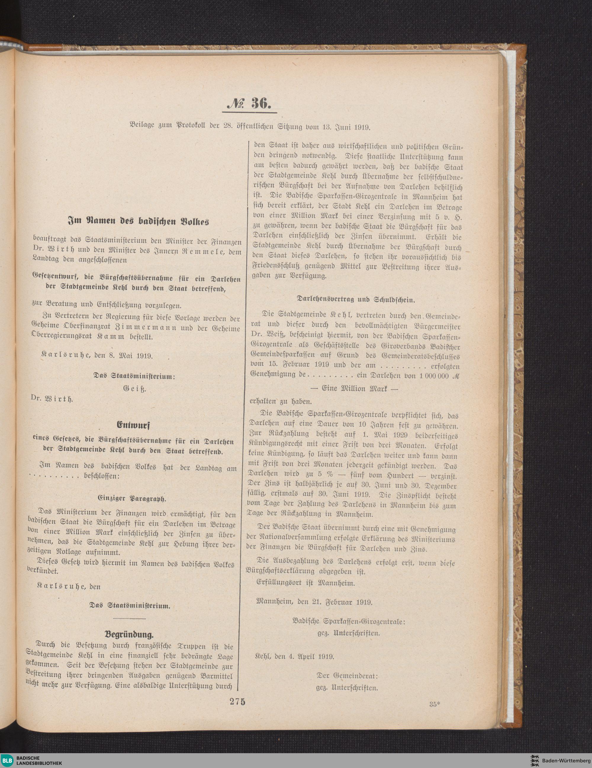 Beilagen zur 28. Sitzung (13.06.1919)