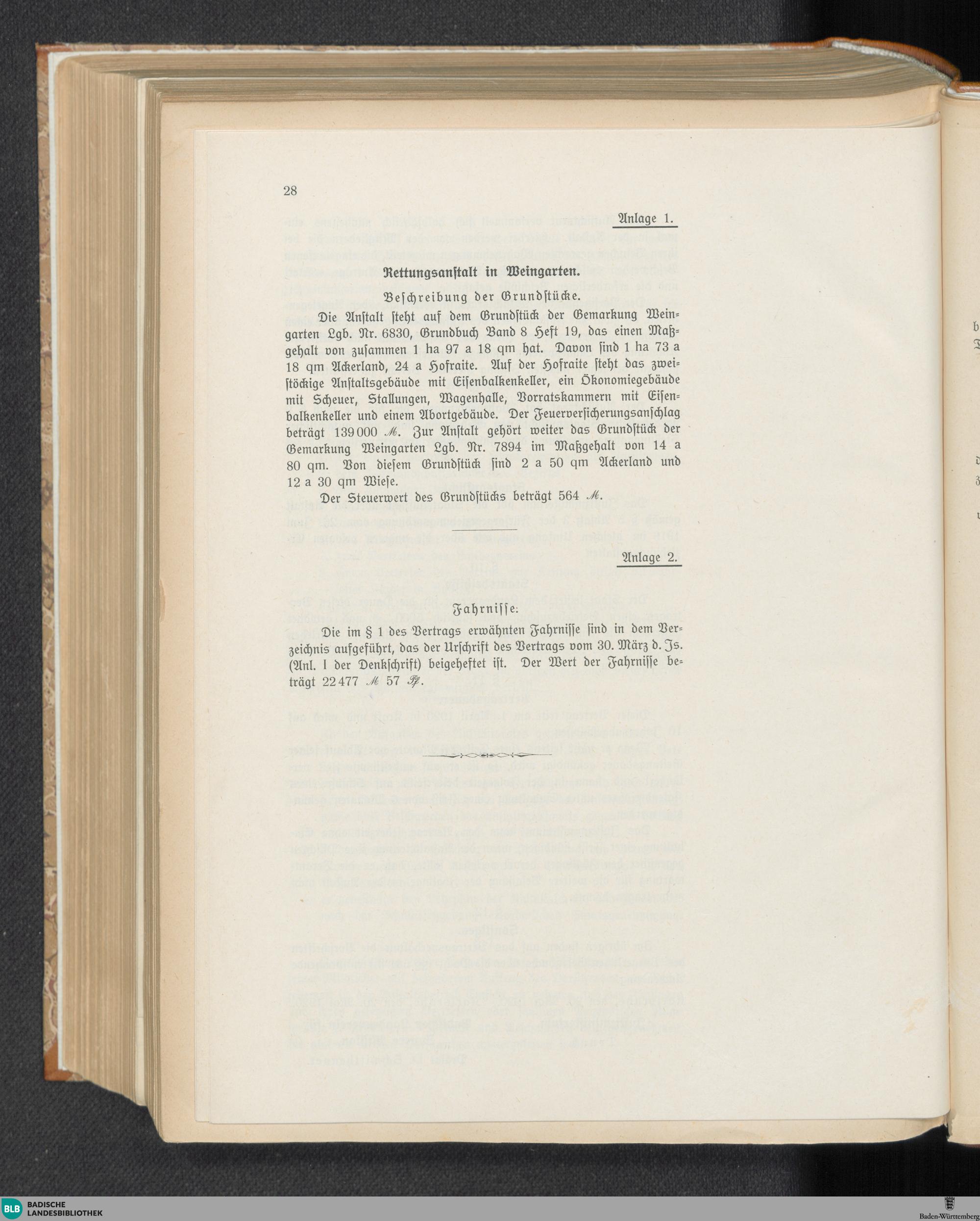 Denkschrift über die Übernahme der Erziehungsanstalten in Hüfingen, Weingarten und...