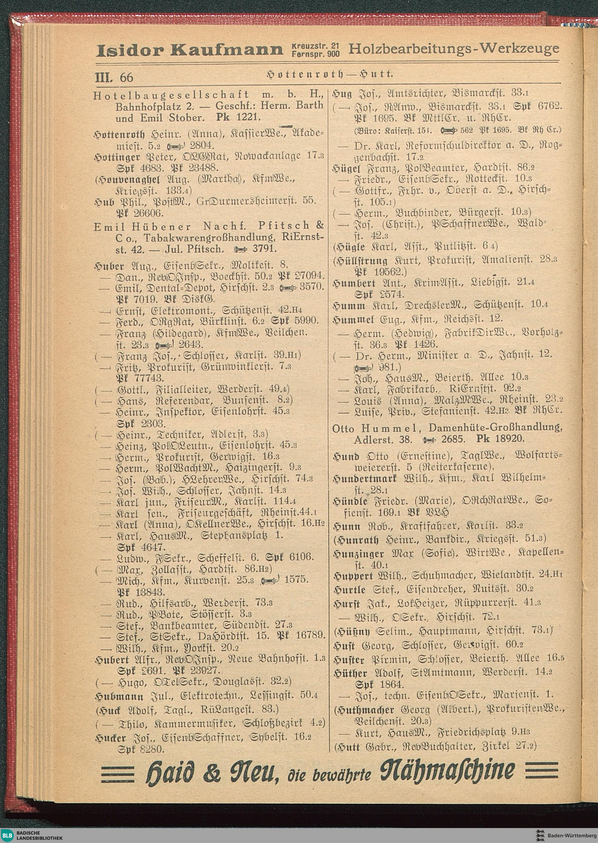 Adressbuch (Stadtbuch, Einwohnerbuch) der Landeshauptstadt Karlsruhe