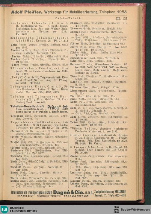 Adressbuch (Stadtbuch, Einwohnerbuch) der Landeshauptstadt Karlsruhe
