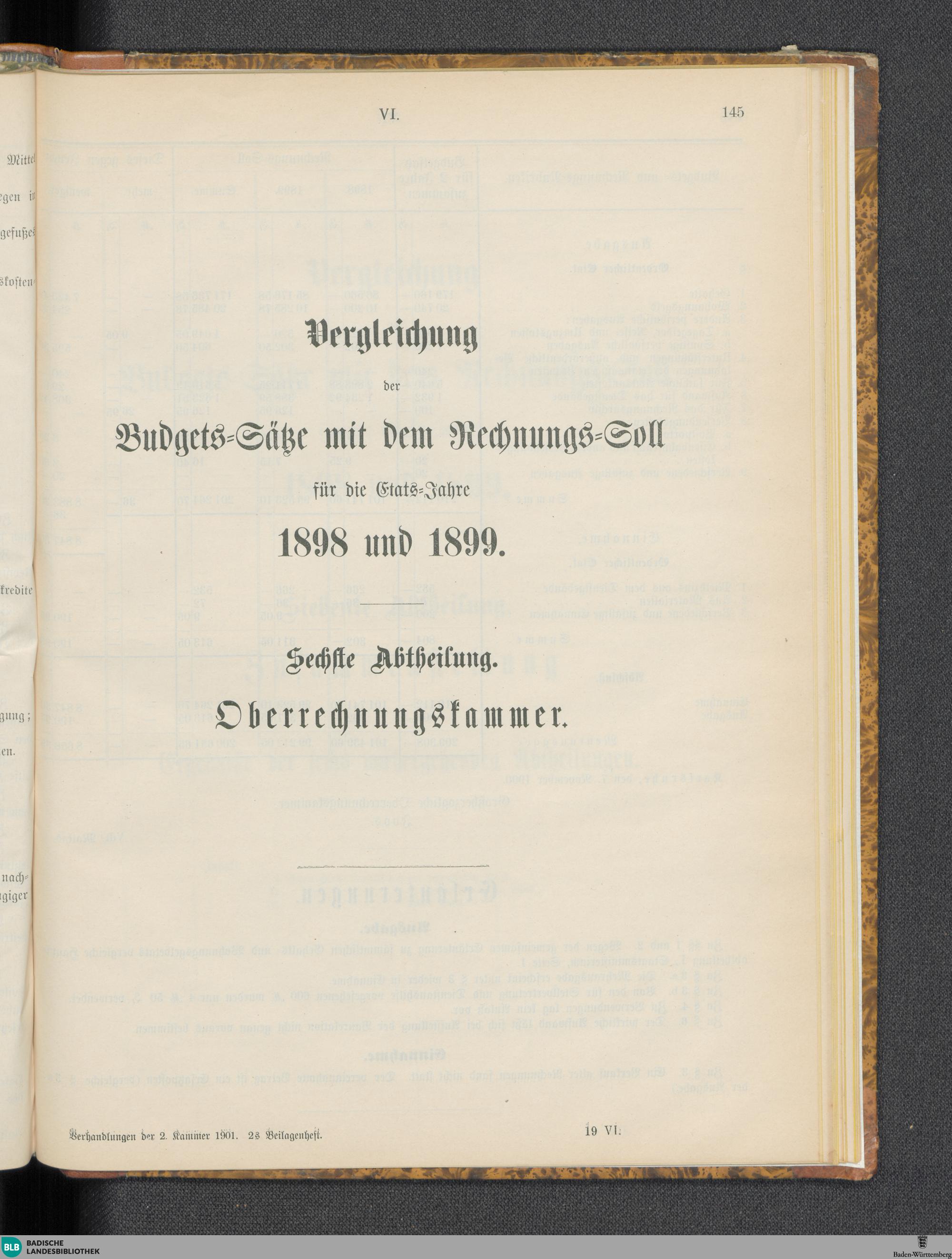 Vergleichung der Budgets-Sätze mit dem Rechnungs-Soll für die Etats-Jahre 1898 und...