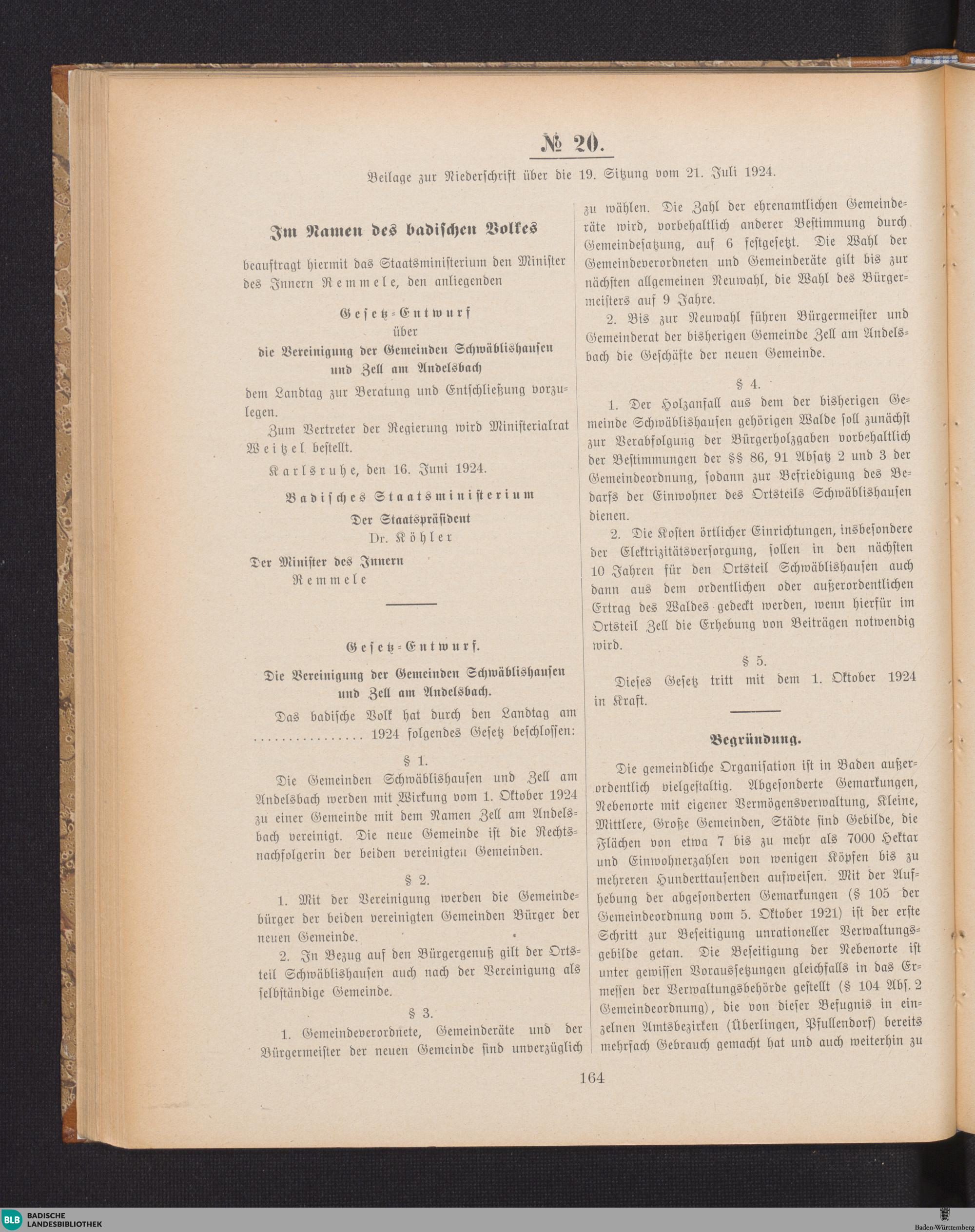 Beilagen zur 19. Sitzung (21.07.1924)