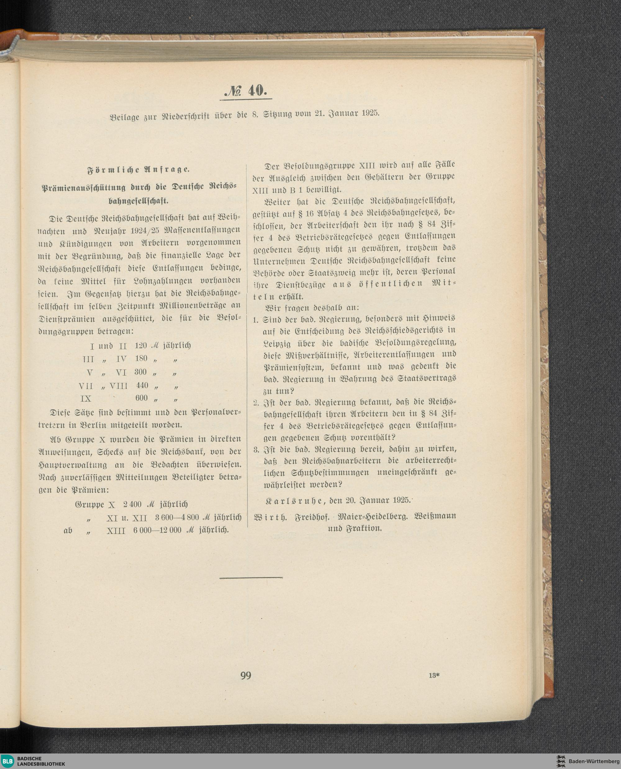 Beilagen zur 8. Sitzung (21.01.1925)