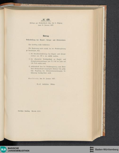 Beilagen zur 9. Sitzung (19.01.1927)