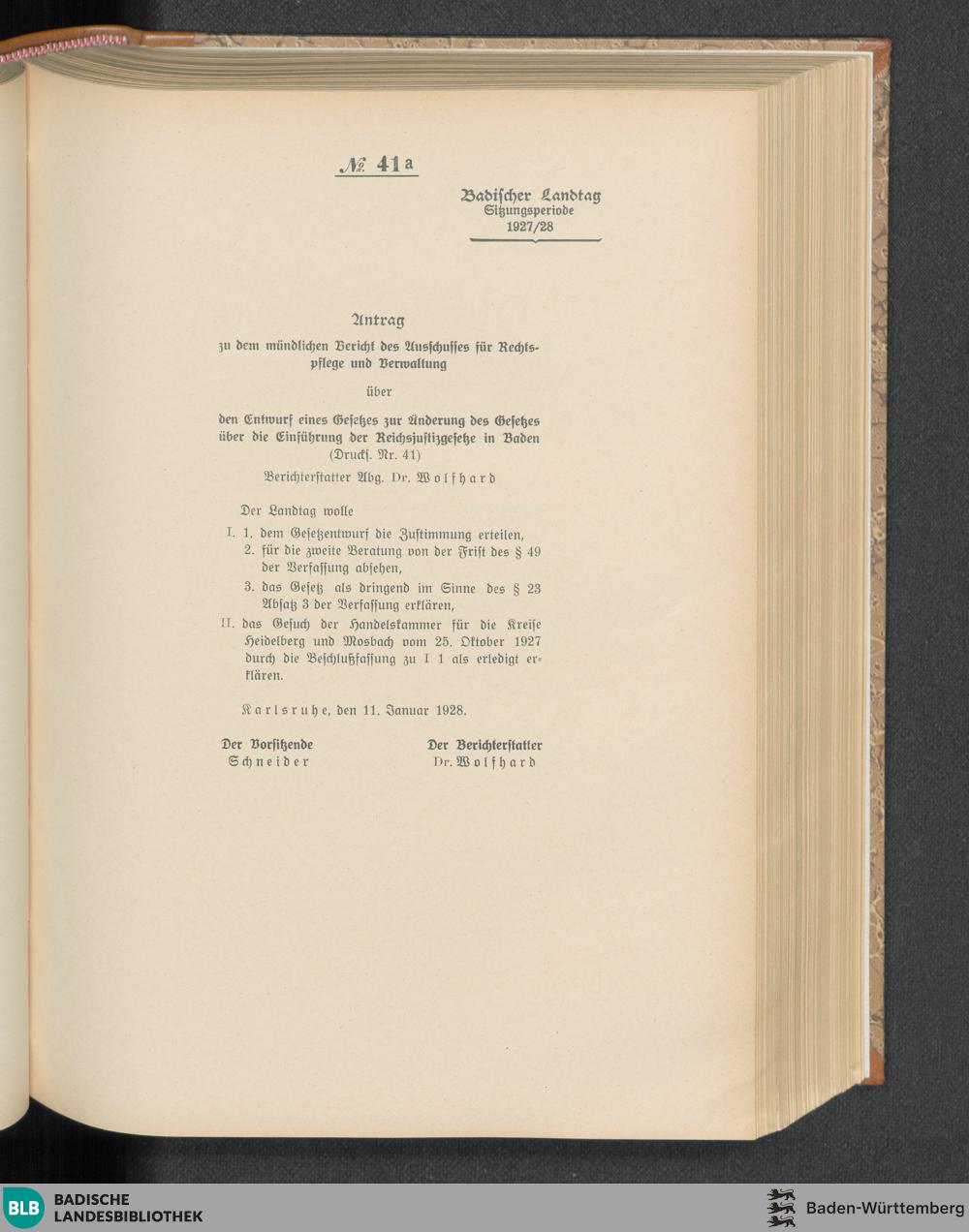 Nr. 41 a. Antrag zu dem mündlichen Bericht des Ausschusses für Rechtspflege und ...