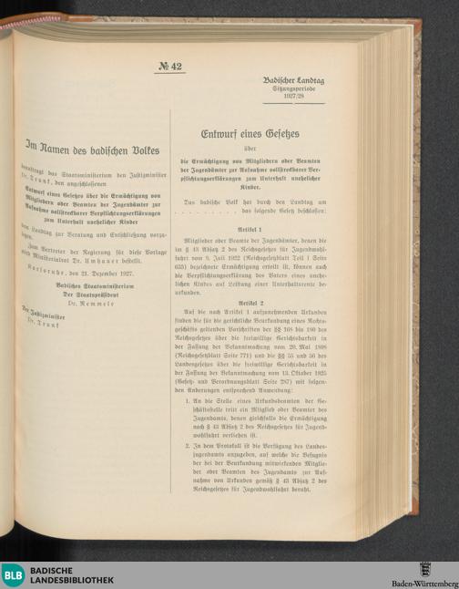 Nr. 42. Entwurf eines Gesetzes über die Ermächtigung von Mitgliedern oder Beamten...