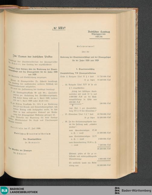 Nr. 53 h/9. Gesetzentwurf über die Änderung des Staatsvoranschlags und des Finanzgesetzes...