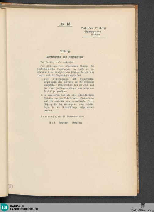 Nr. 13. Antrag. Winterbeihilfe und Krisenfürsorge