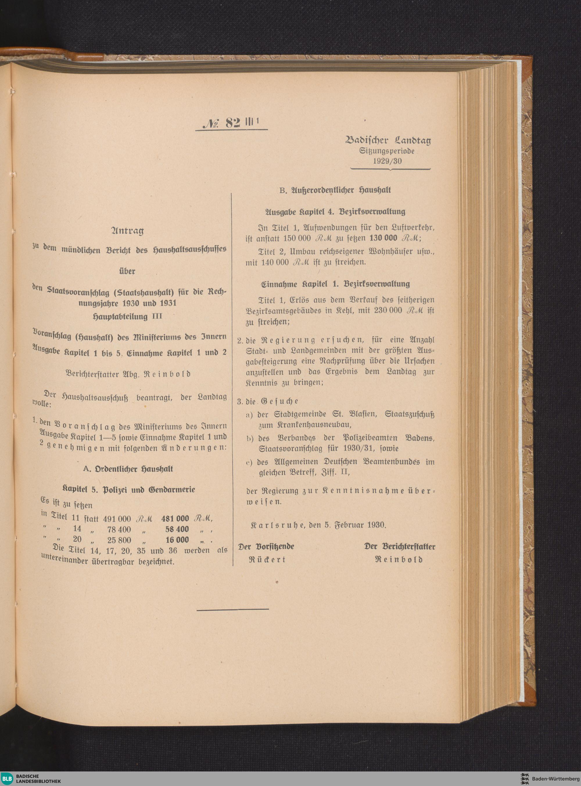 Nr. 82 I/1 - 82 VII/12 Staatsvoranschlag (Staatshaushalt) für die Rechnungsjahre...