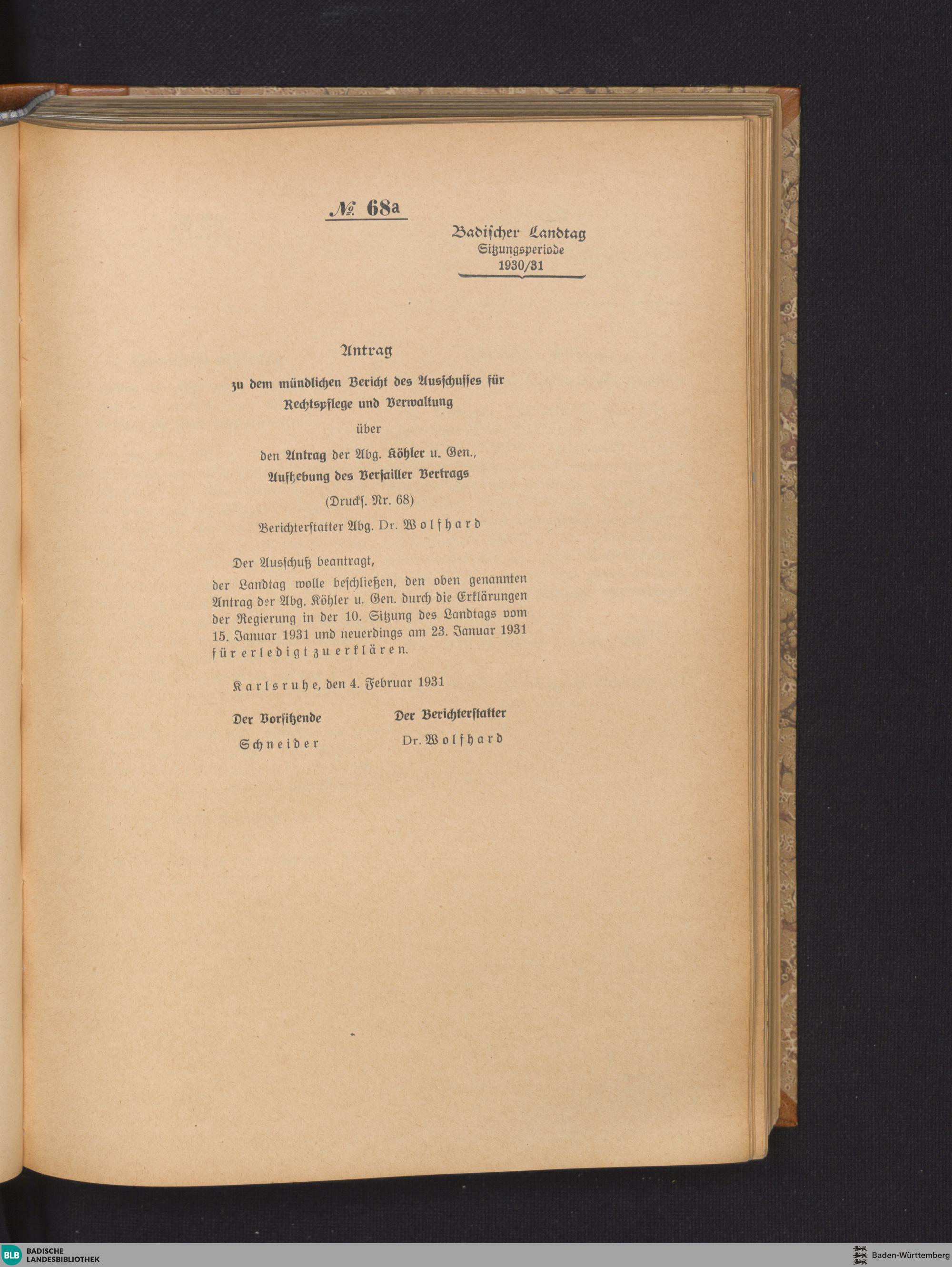 Nr. 68 a. Antrag zu dem mündlichen Bericht des Ausschusses für Rechtspflege und ...