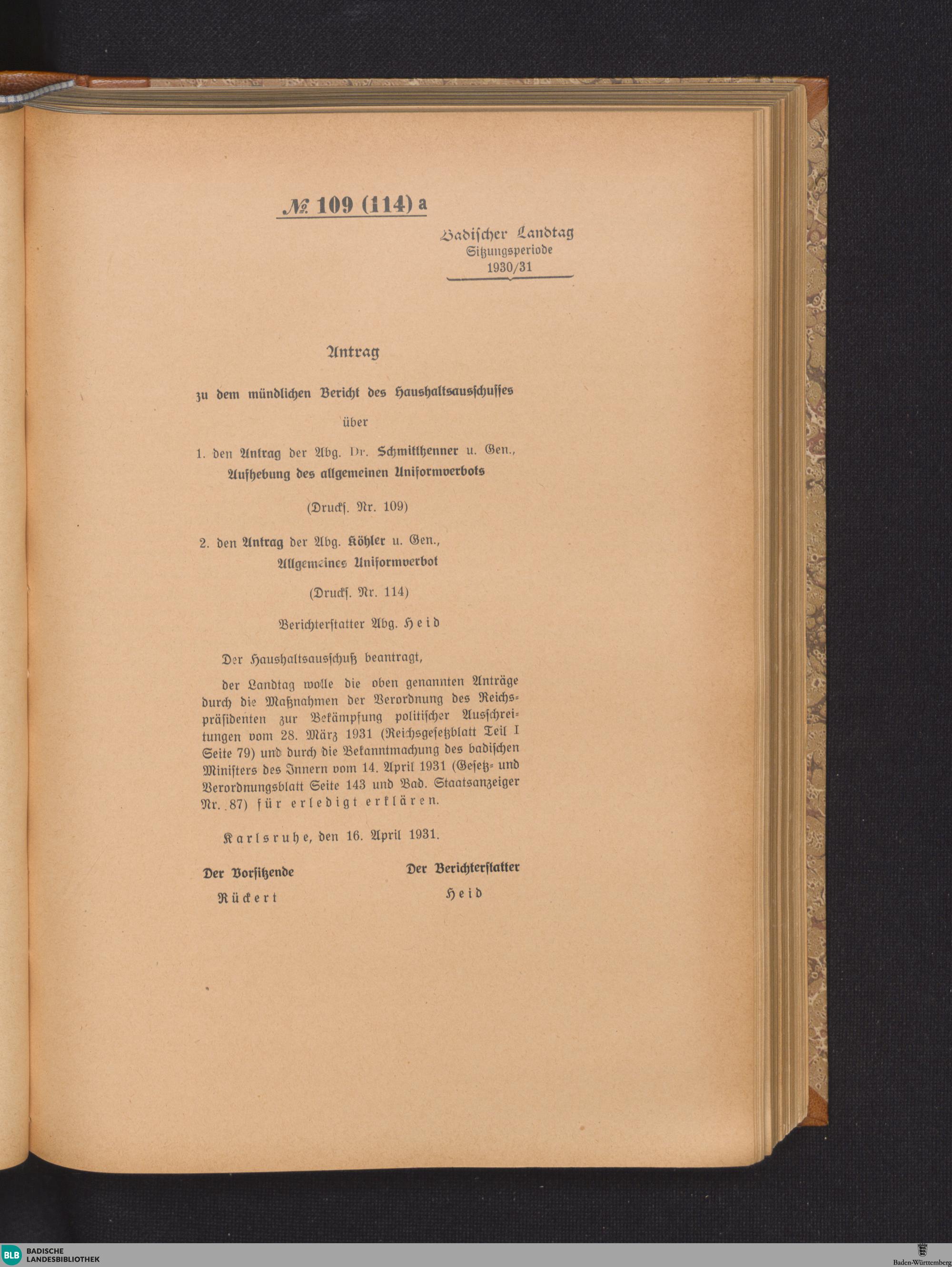 Nr. 109 (114) a. Antrag zu dem mündlichen Bericht des Haushaltsausschusses