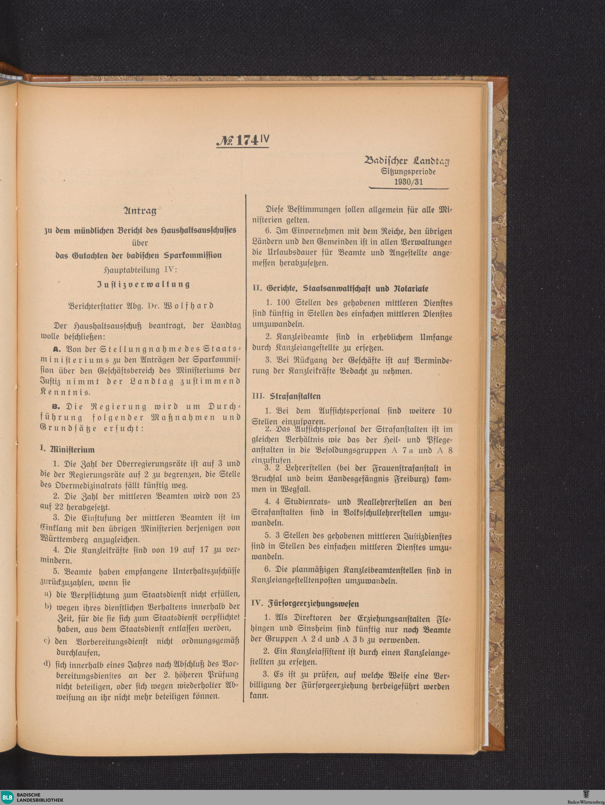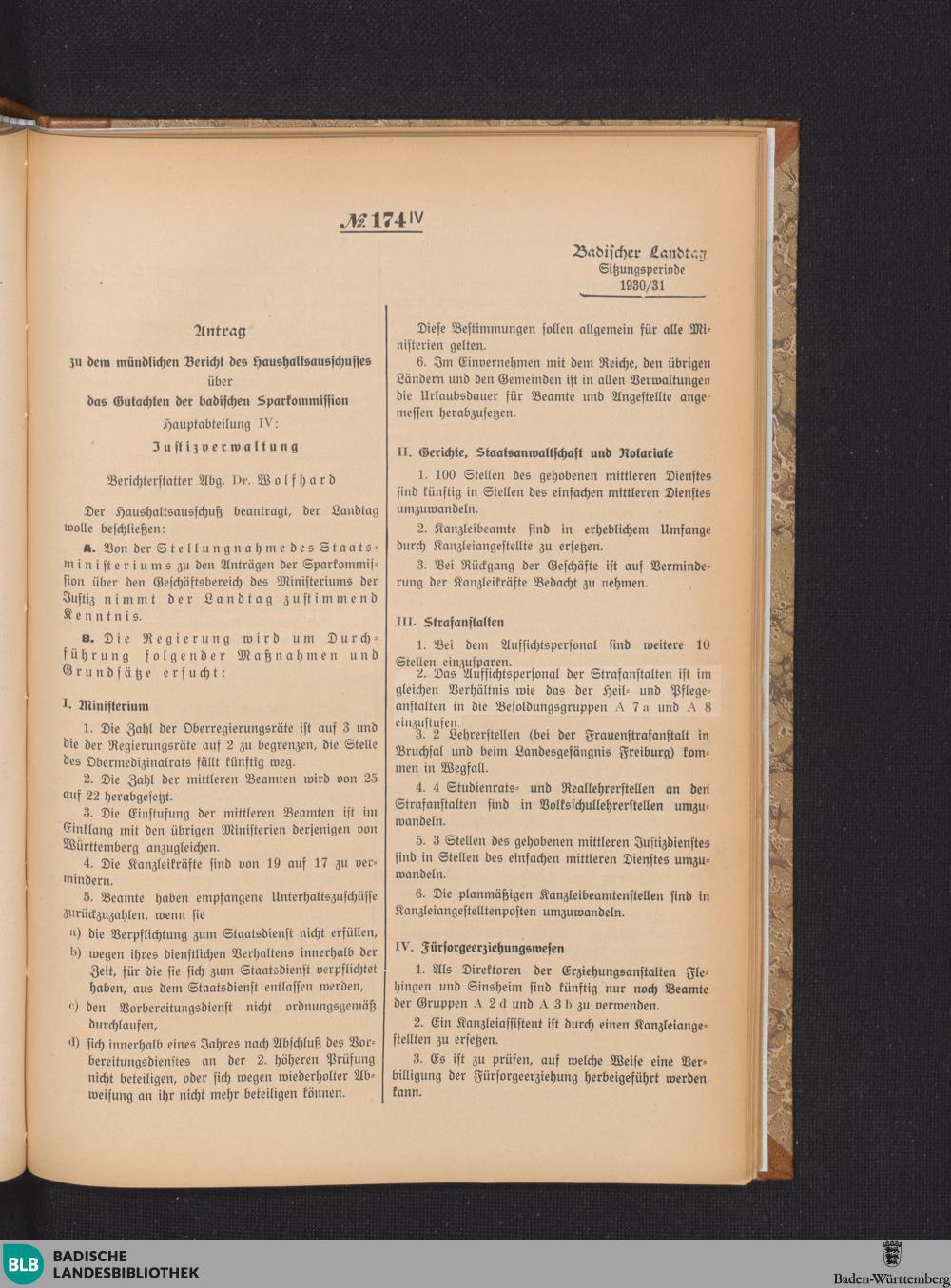 Nr. 174 IV. Antrag zu dem mündlichen Bericht des Haushaltsausschusses