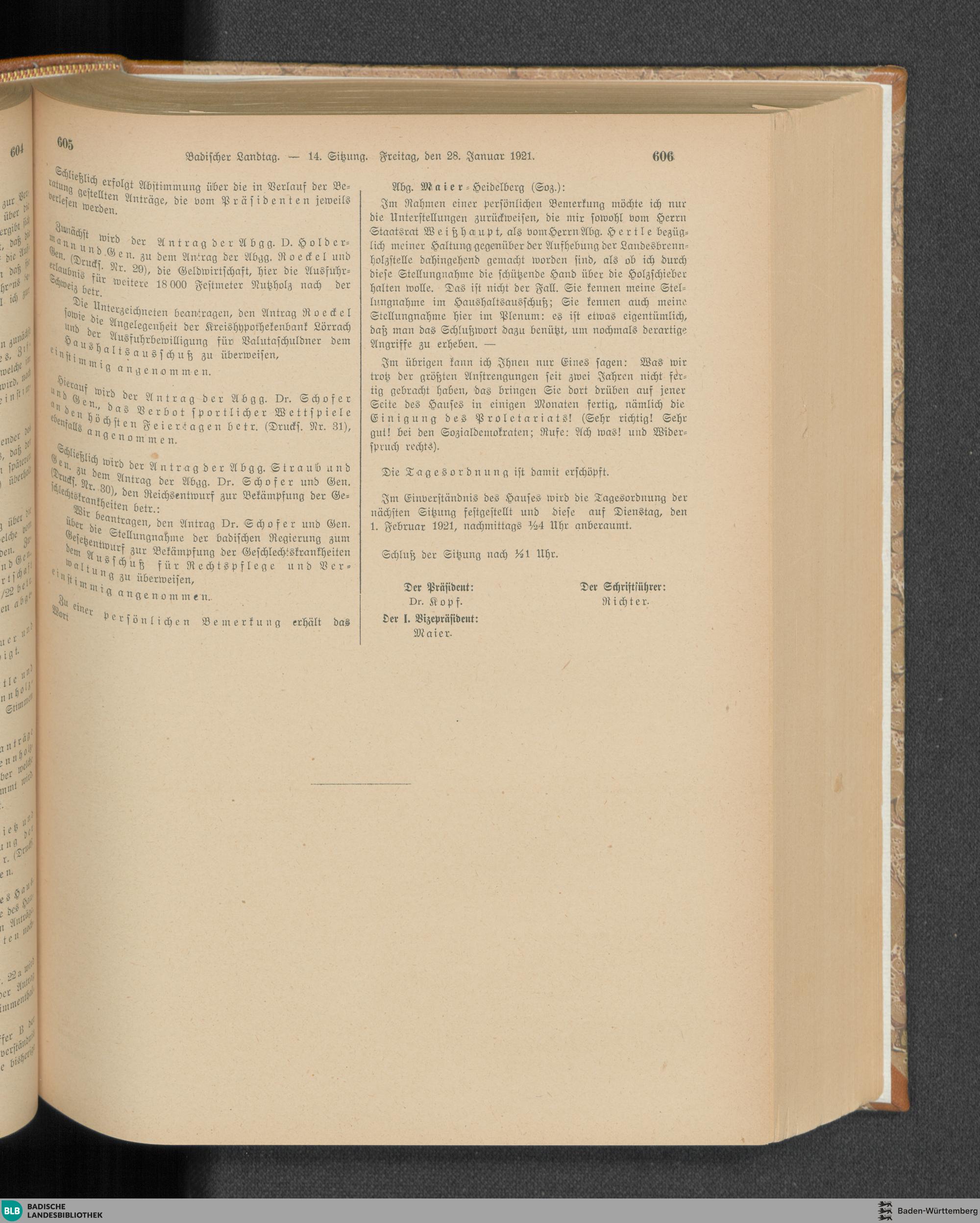 14. Sitzung (28.01.1921)