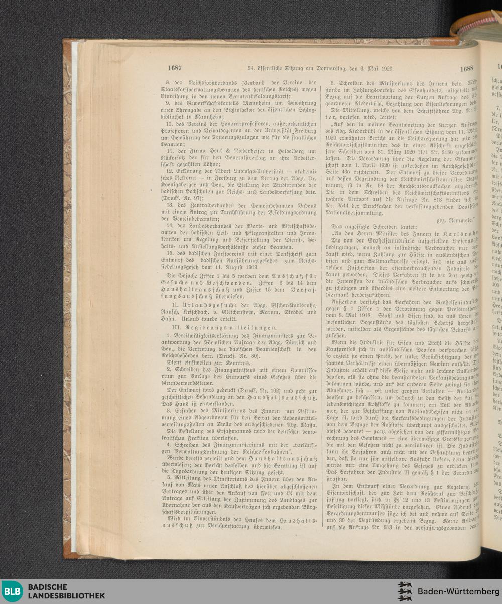 34. Sitzung (06.05.1920)
