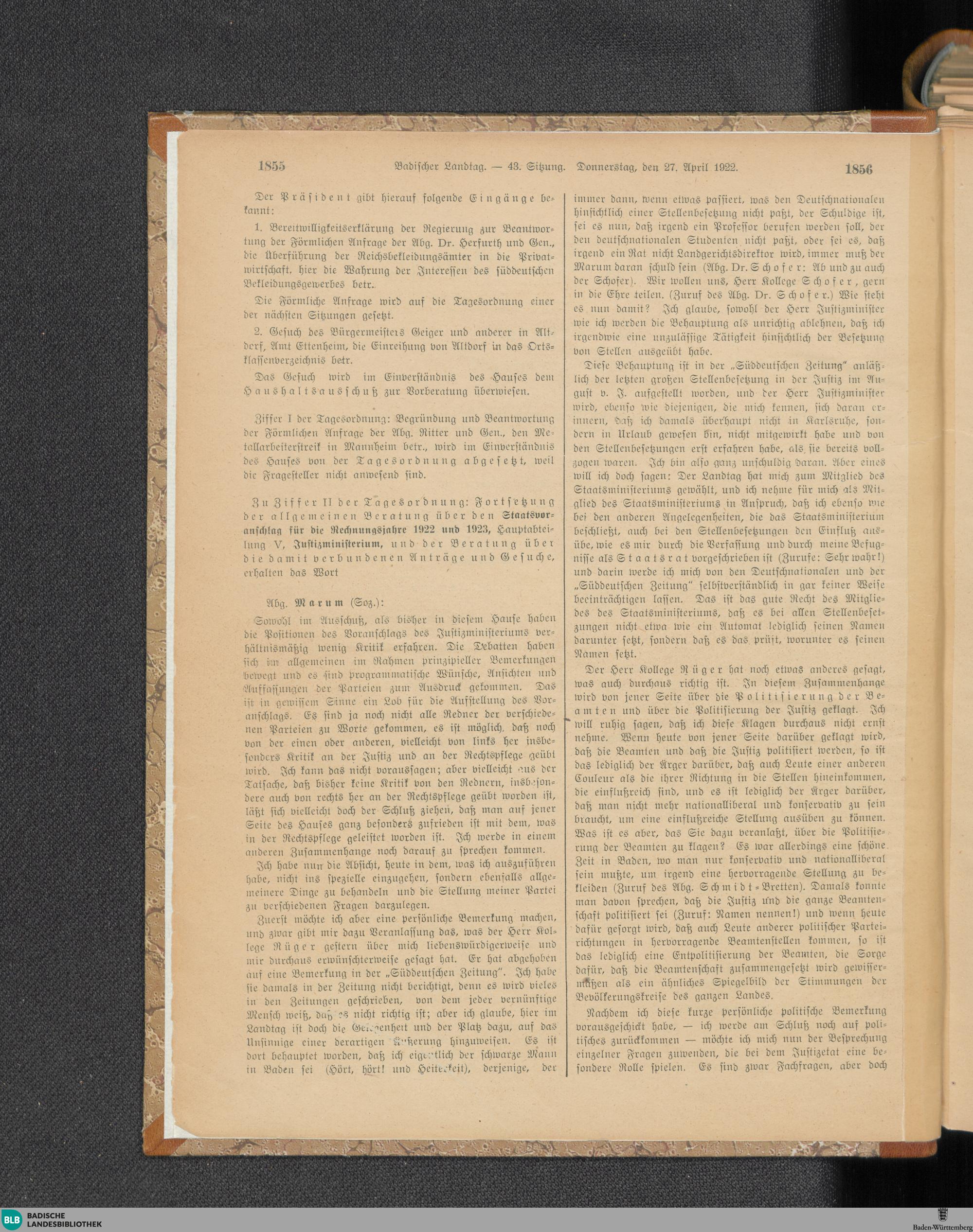 43. Sitzung (27.04.1922)