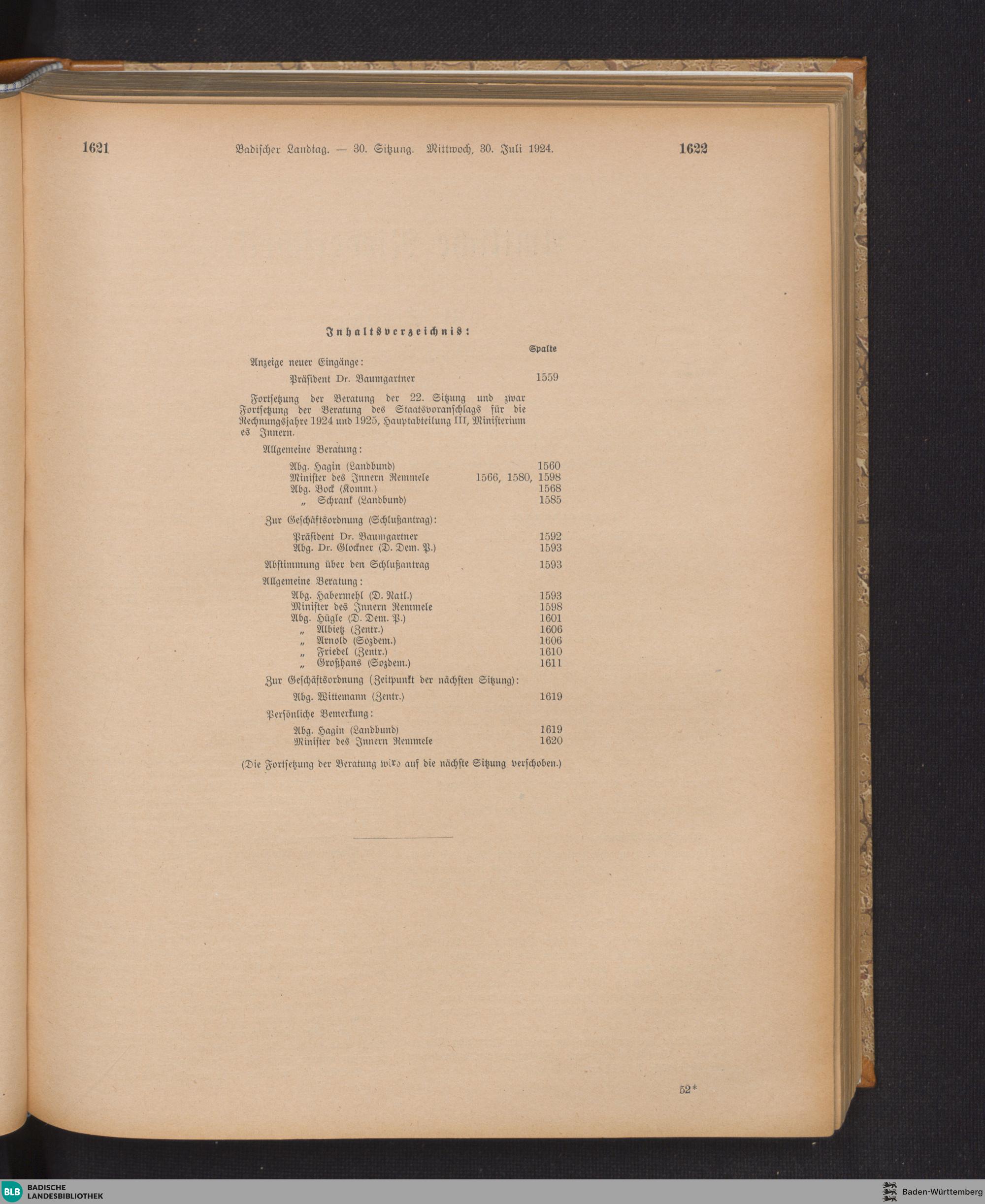 30. Sitzung (30.07.1924)