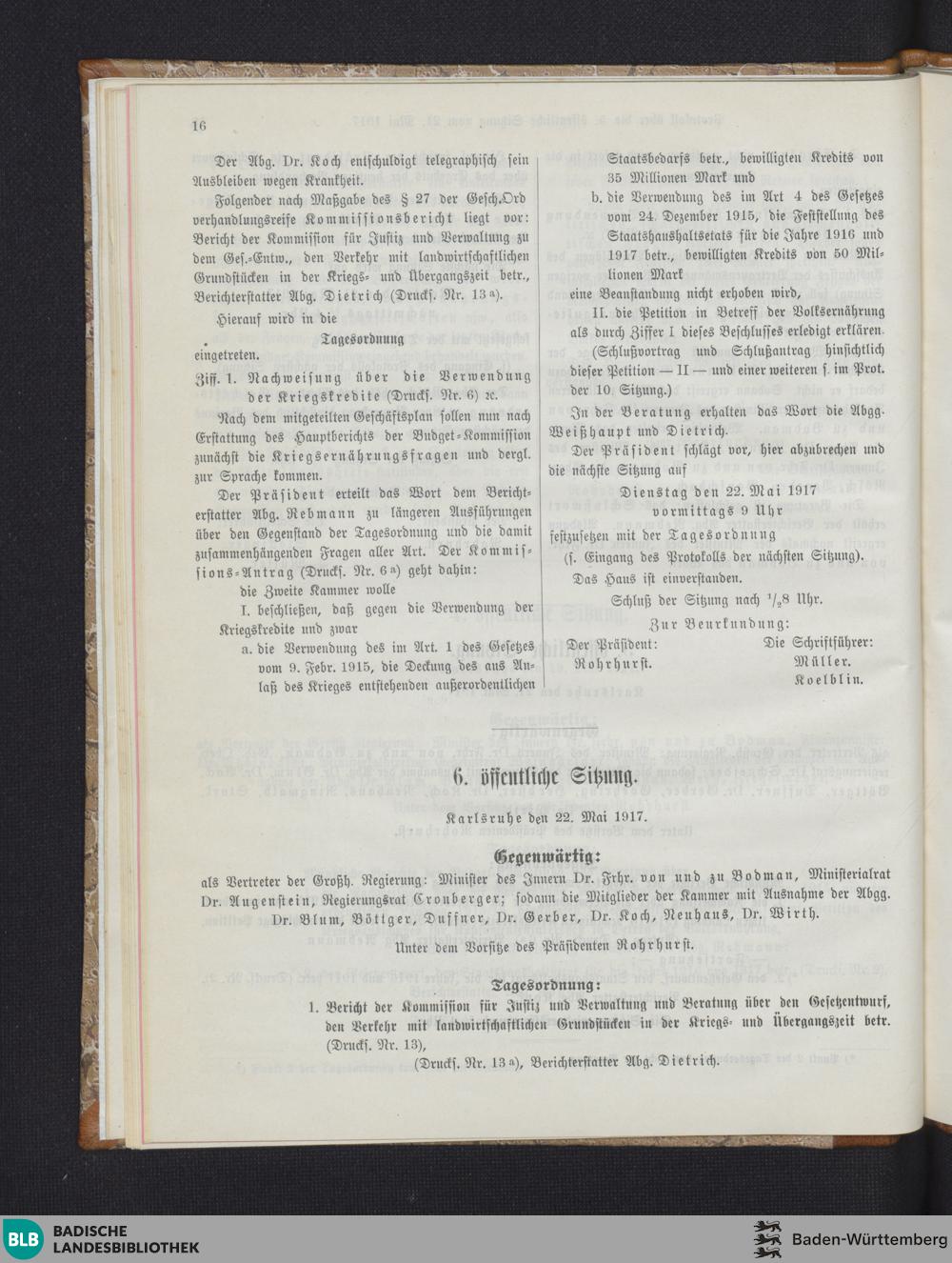 6. Sitzung (22.05.1917)