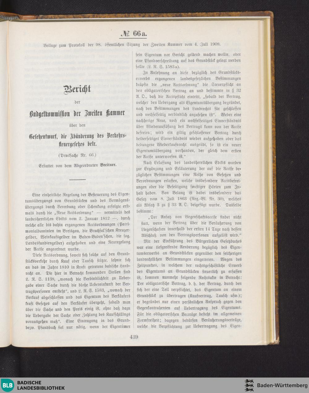 Beilagen zur 98. Sitzung (04.07.1908)