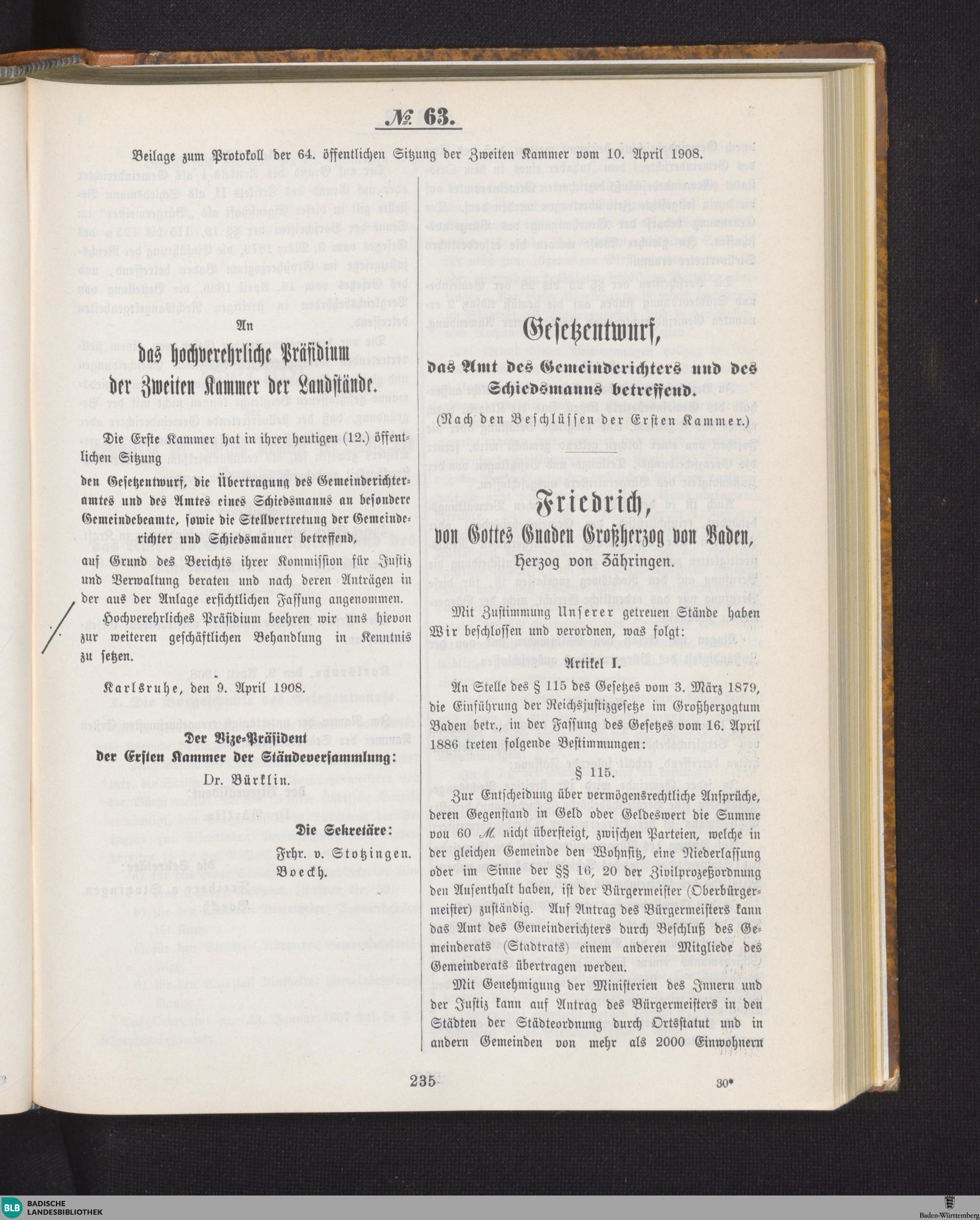 Beilagen zur 64. Sitzung (10.04.1908)
