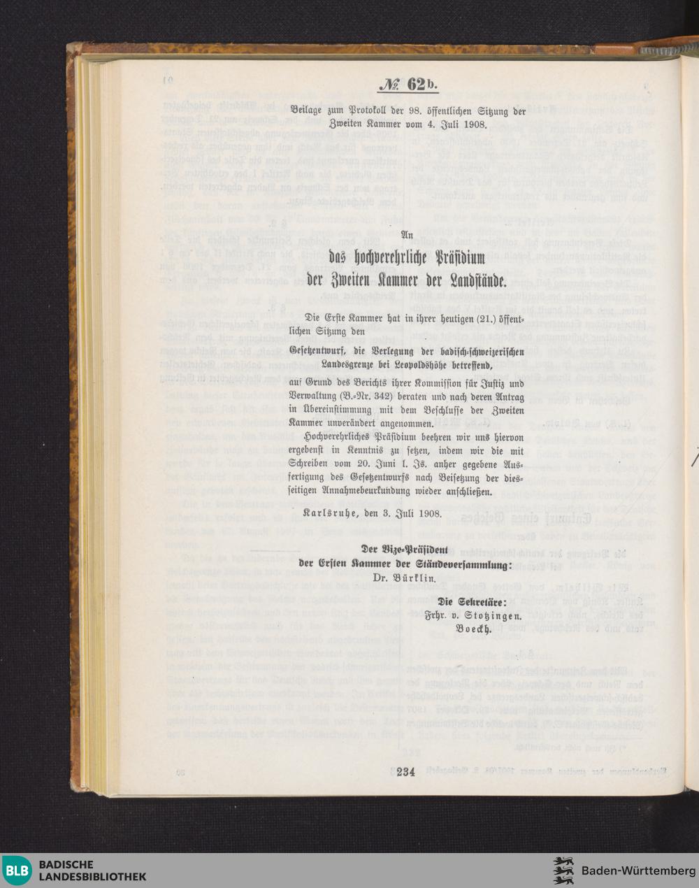 Beilagen zur 98. Sitzung (04.07.1908)