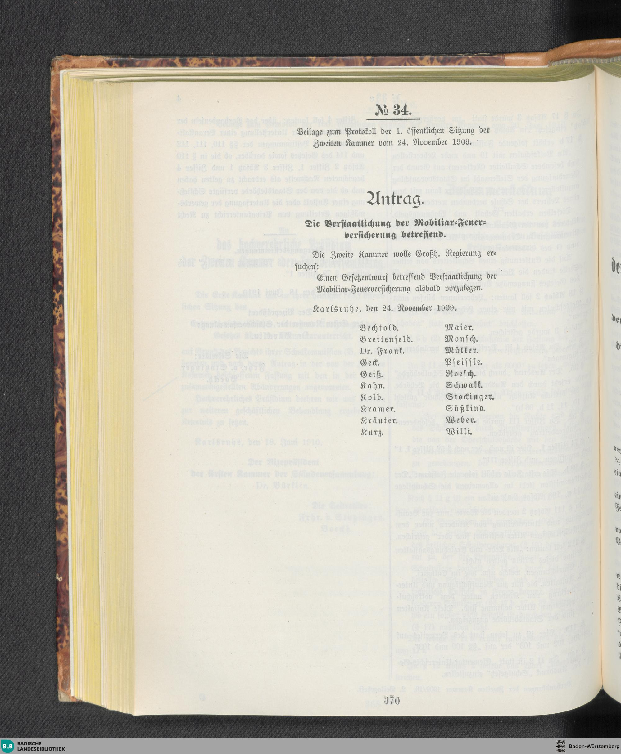 Beilagen zur 1. Sitzung (24.11.1909)