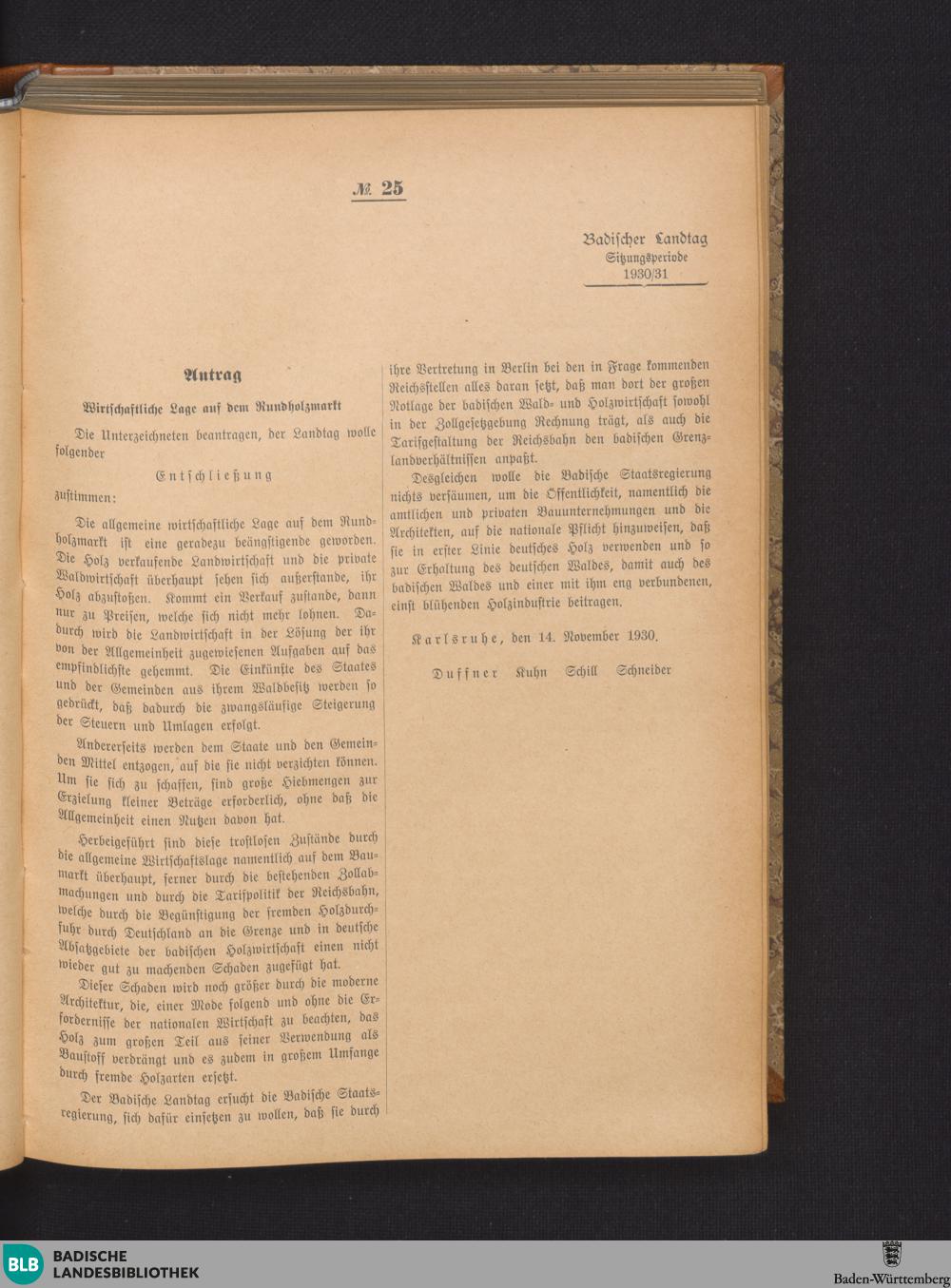 Nr. 25. Antrag. Wirtschaftliche Lage auf dem Rundholzmarkt