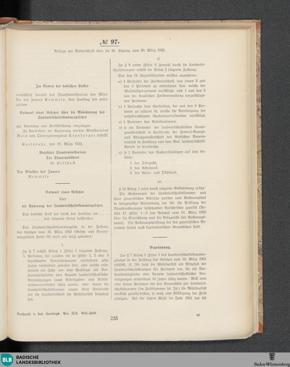 Beilagen zur 26. Sitzung (20.03.1925)