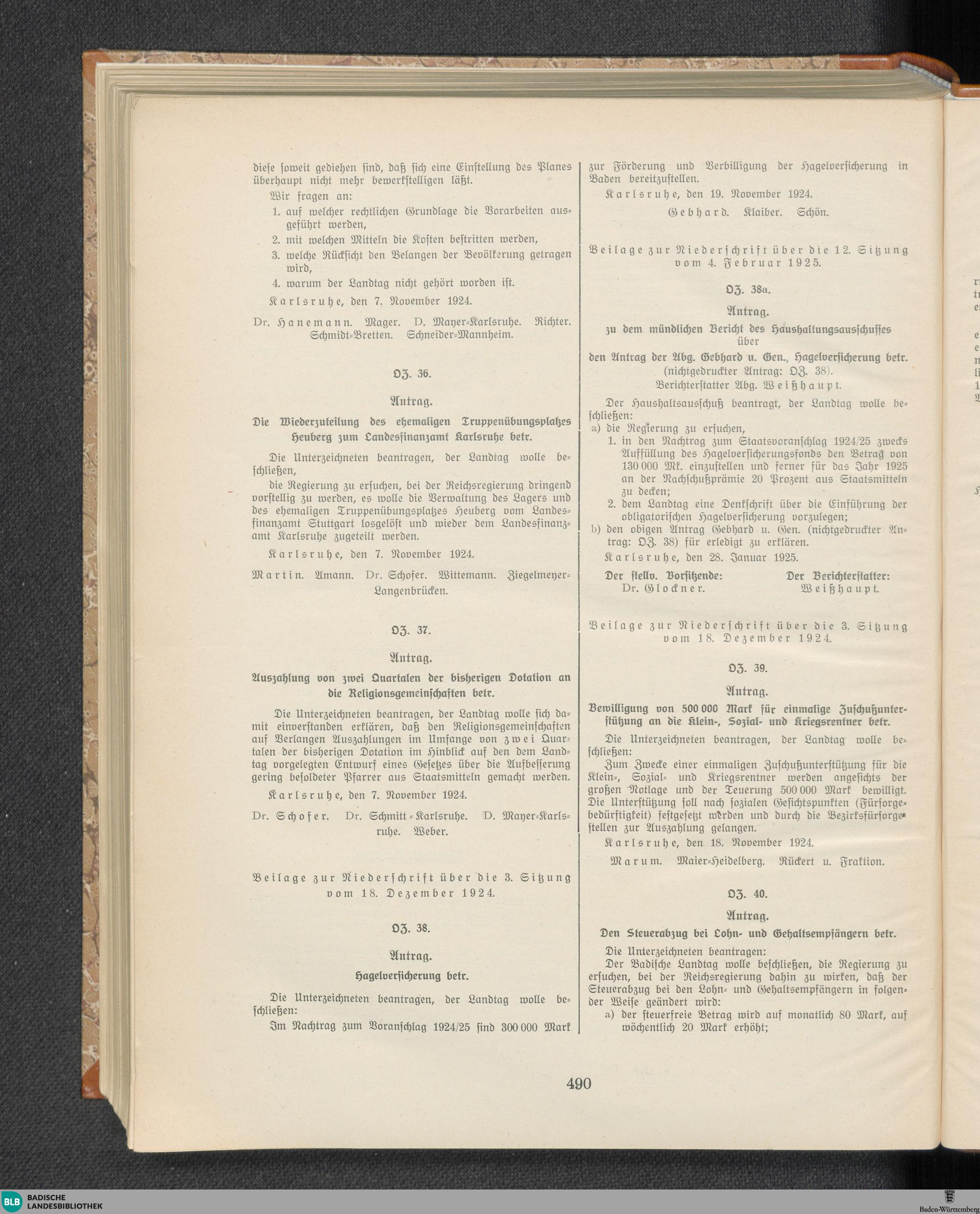 Beilagen zur 2. Sitzung (07.11.1924)